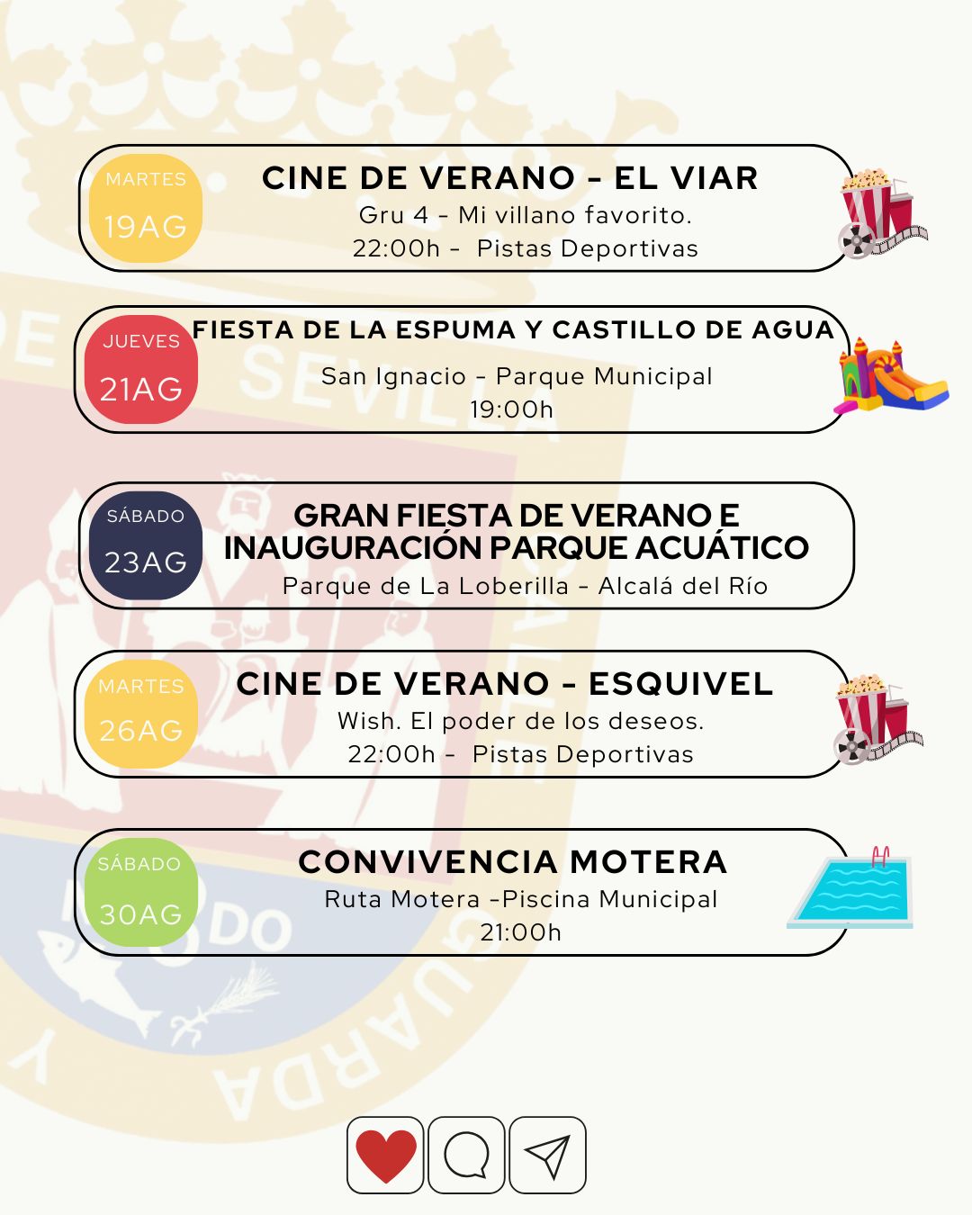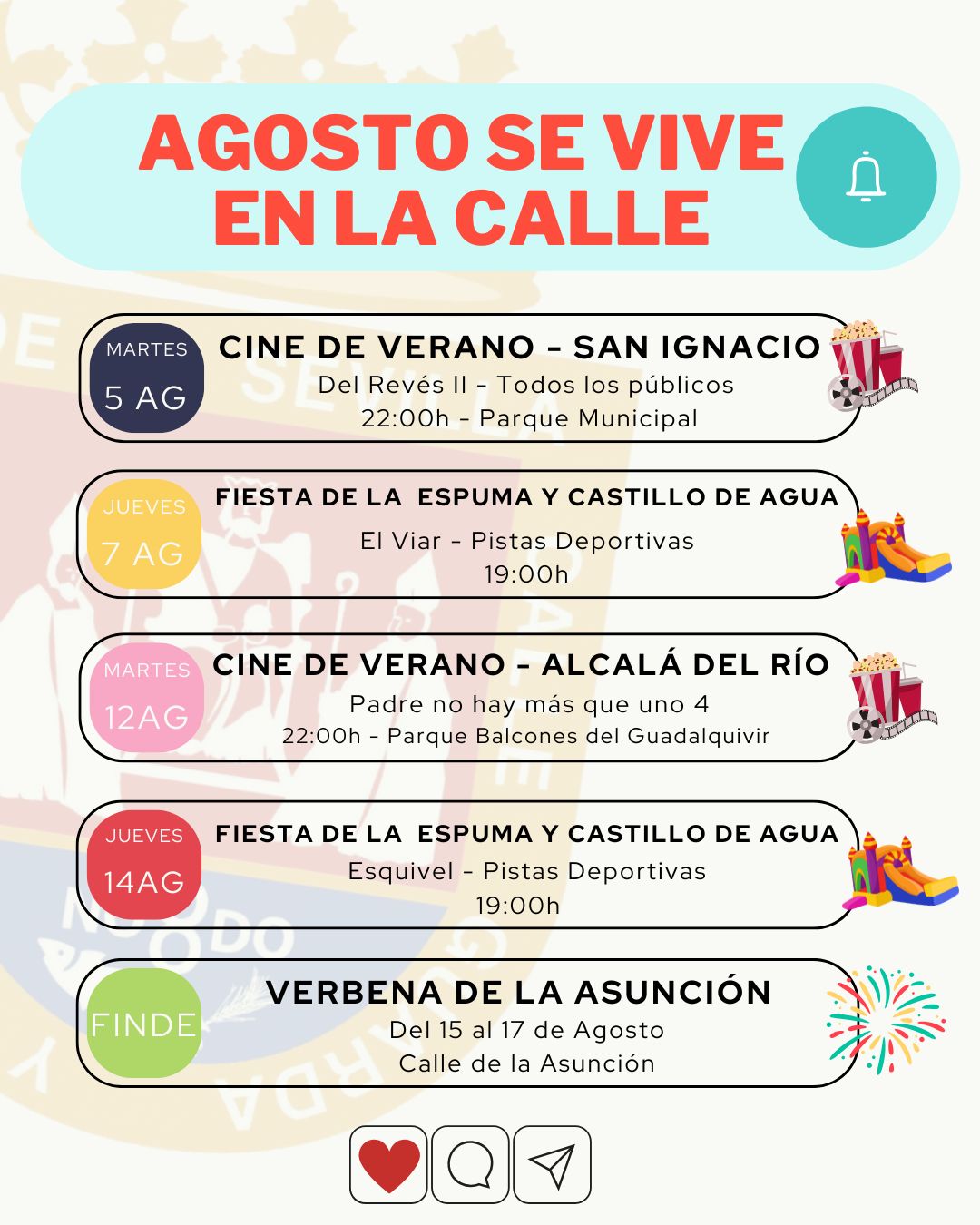 El mes de agosto llega con fuerza a Alcalá del Río, y desde el Ayuntamiento queremos que se viva en la calle, en familia y en comunidad. Por ello, a través de las Delegaciones de Cultura y Juventud, se ha diseñado una programación especial cargada de actividades pensadas para todas las edades y para disfrutar de nuestro entorno más cercano.