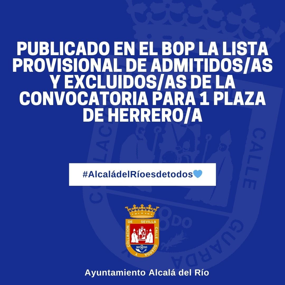 Ayer se publicó en el Boletín Oficial de la Provincia de Sevilla la aprobación de la lista provisional de admitidos/as y excluidos/as en la convocatoria para la provisión de una plaza de herrero/a de la plantilla de personal laboral fijo, a cubrir por el sistema de concurso-oposición, en turno libre, correspondiente a la oferta de empleo público de 2022.