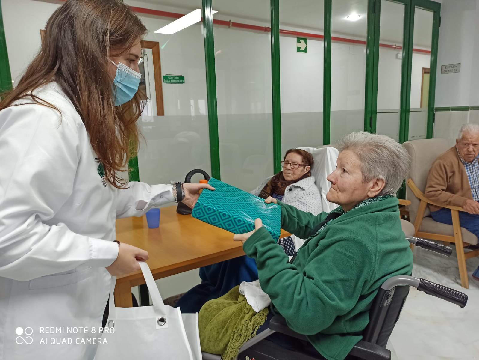 Un año más, por seguridad debido a las circunstancias COVID, el regalo fue entregado en mano a los trabajadores de la residencia para su posterior reparto entre los residentes