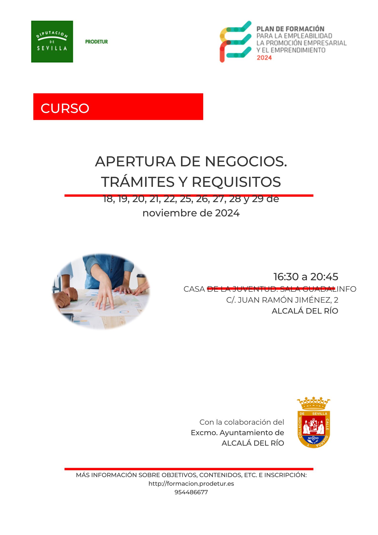 El Ayuntamiento de Alcalá del Río invita a todos los interesados a participar en un curso práctico sobre los trámites, requisitos y procedimientos necesarios para la apertura de un negocio en cualquier modalidad jurídica. Esta formación gratuita, de 40 horas de duración, está orientada a emprendedores, autónomos y personas que desean formalizar sus ideas de negocio en el municipio.