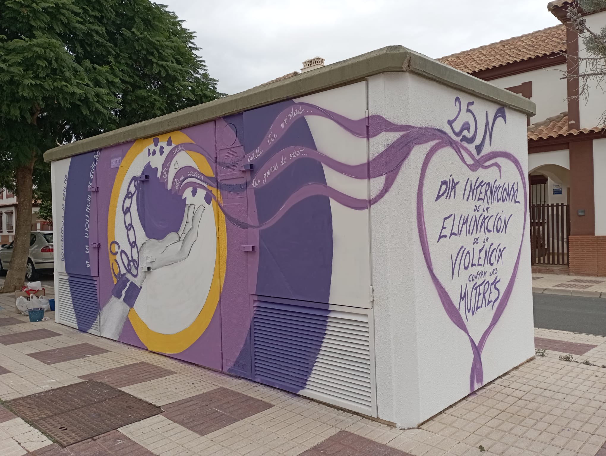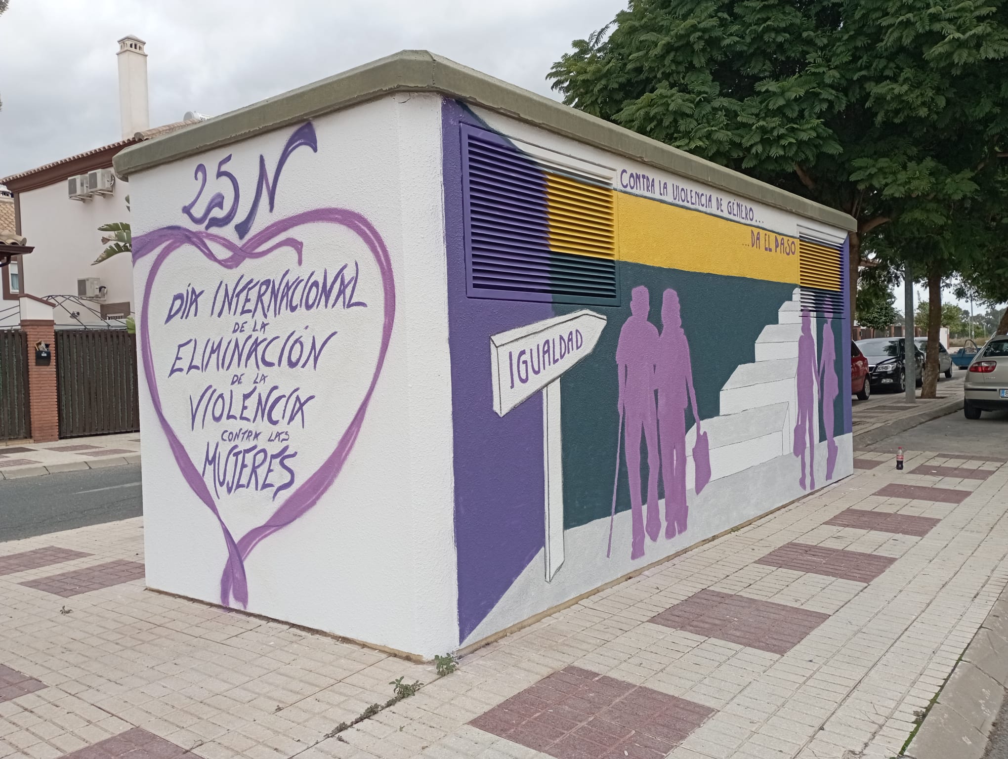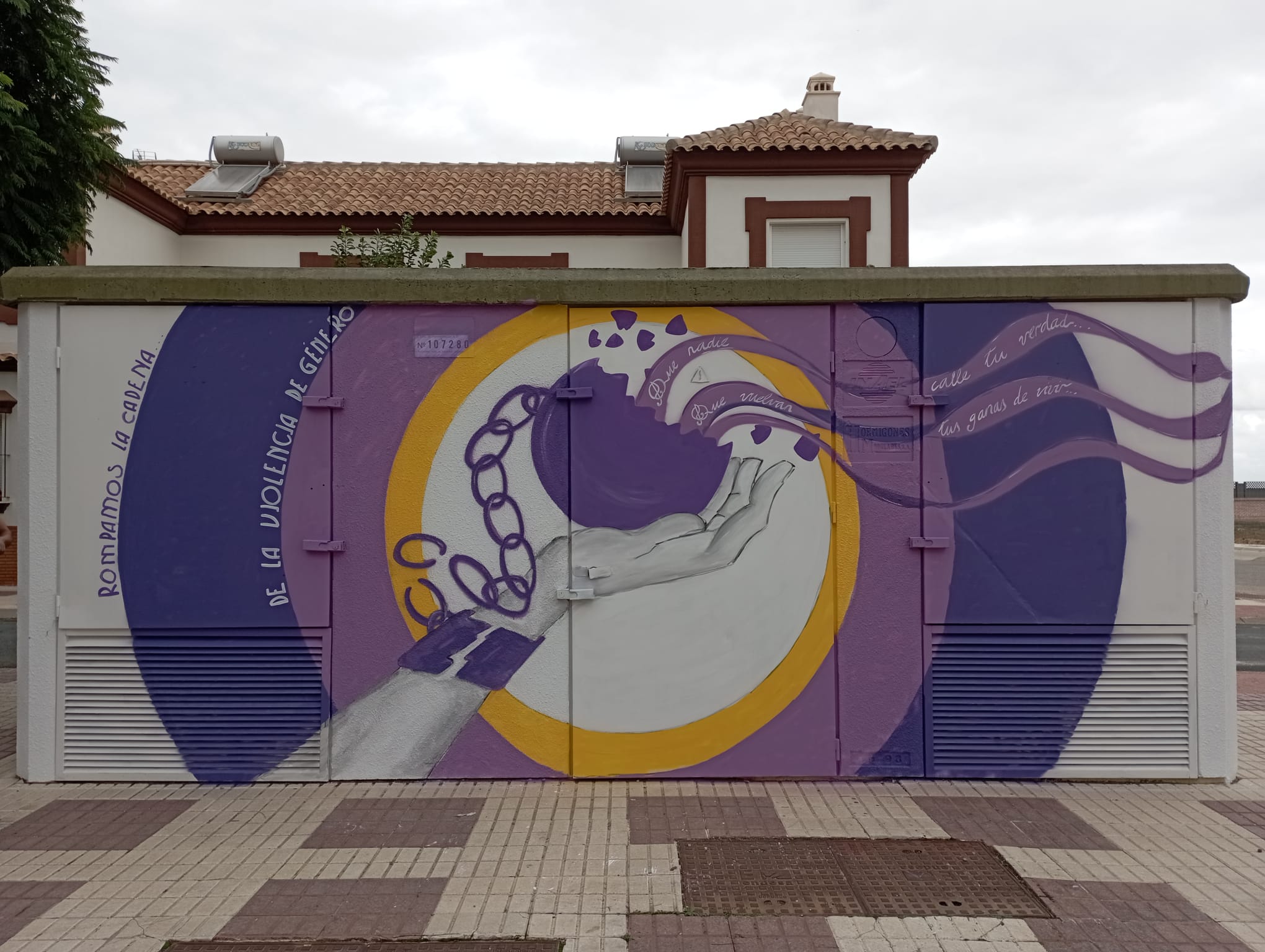Este mural, que da por concluido el proyecto de Arte Urbano, ha sido nuevamente realizado por la artista local María Jesús Rodríguez Arispón, quien ha querido plasmar en él las partes más significativas de la canción de ahí que en el mural aparezcan, bajo los colores que representan este día, unas cadenas rotas y en la otra cara un simbólico paso de peatones que lleva hacia la igualdad que todos queremos alcanzar.