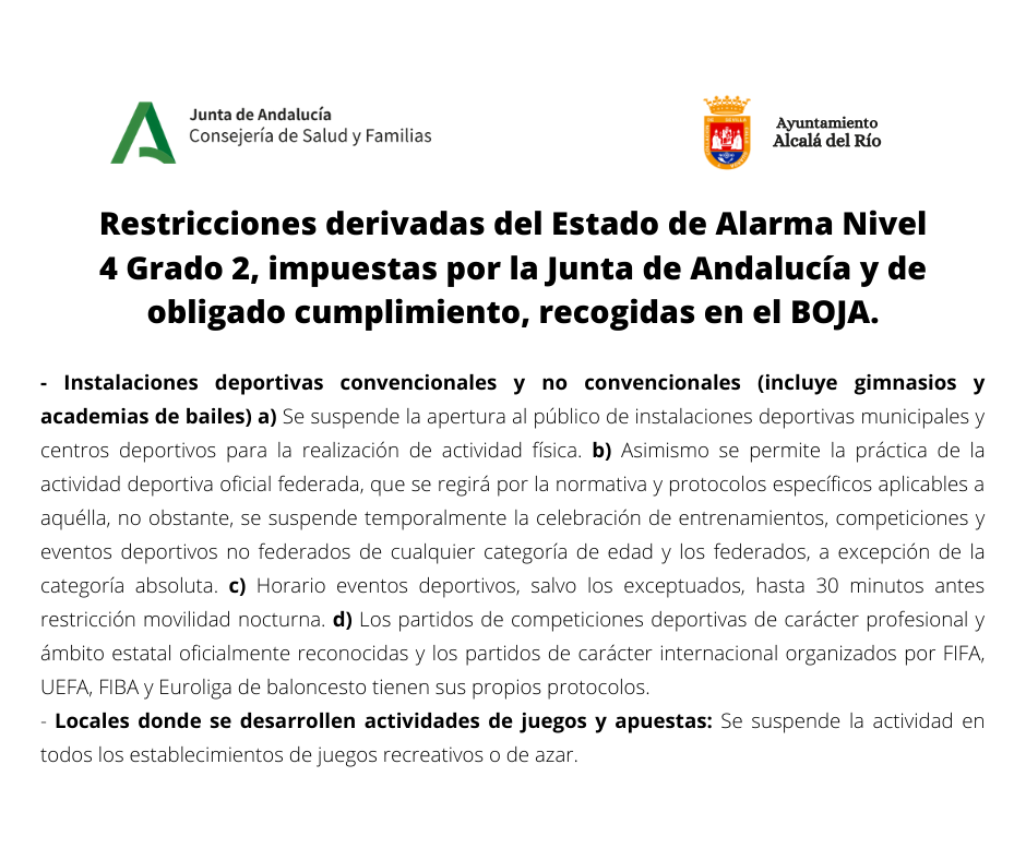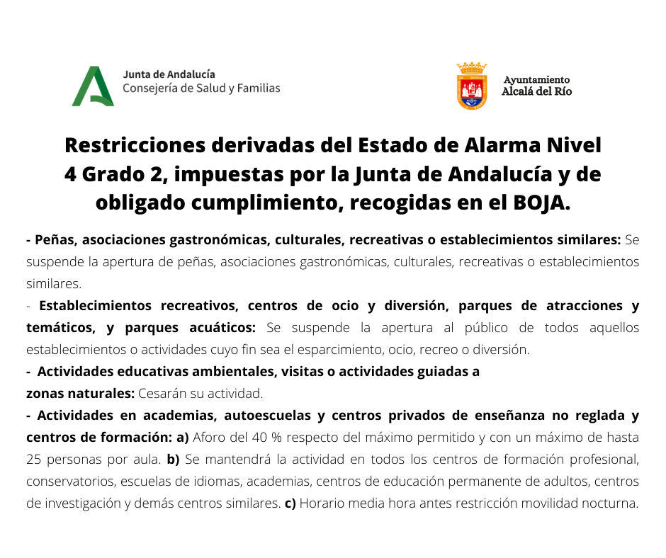 La Junta de Andalucía publica el BOJA con las restricciones que ello conlleva.