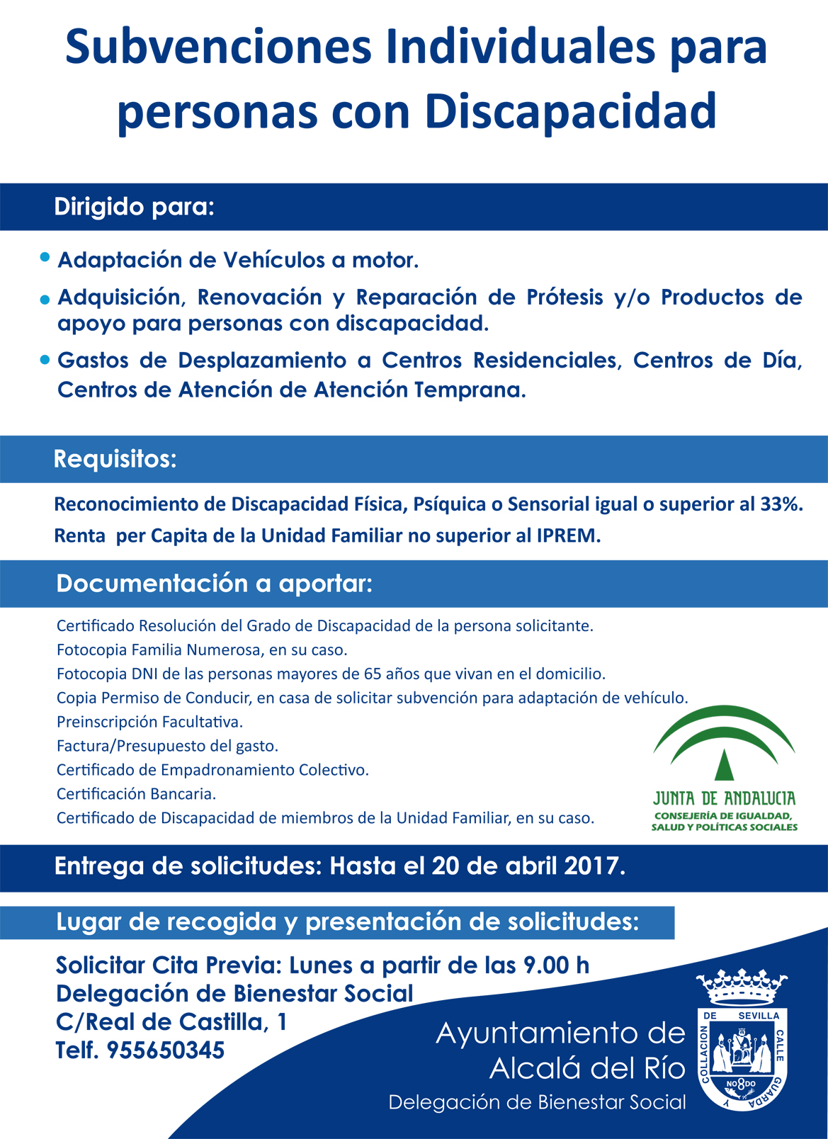 para las subvenciones individuales para personas con Discapacidad. Este programa de ayuda pretender