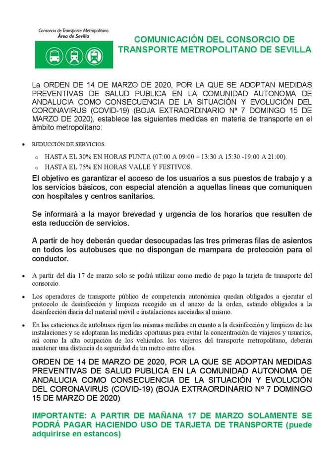 COMUNICACIÓN DEL CONSORCIO DE TRANSPORTE METROPOLITANO DE SEVILLA.