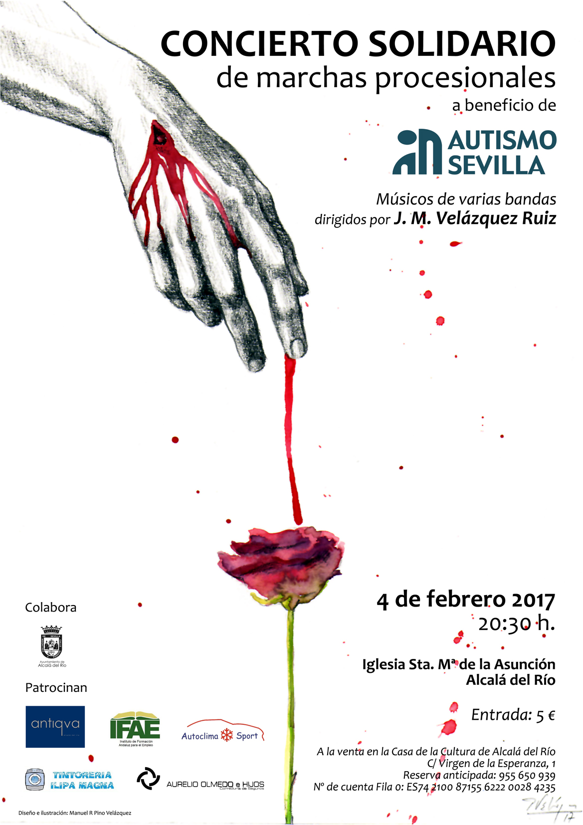 El próximo 4 de febrero tenemos una cita solidaria en Alcalá del Río. Un evento que reunirá a músicos de varias bandas de música dirigidos por el alcalareño Juan Manuel Velázquez Ruiz. Con una simbólica entrada de cinco euros, disponibles en la Casa de la Cultura, los asistentes colaboran con esta extraordinaria iniciativa, además de poder realizar una aportación si lo desean, donde todos los ingresos se destinarán a Autismo Sevilla.