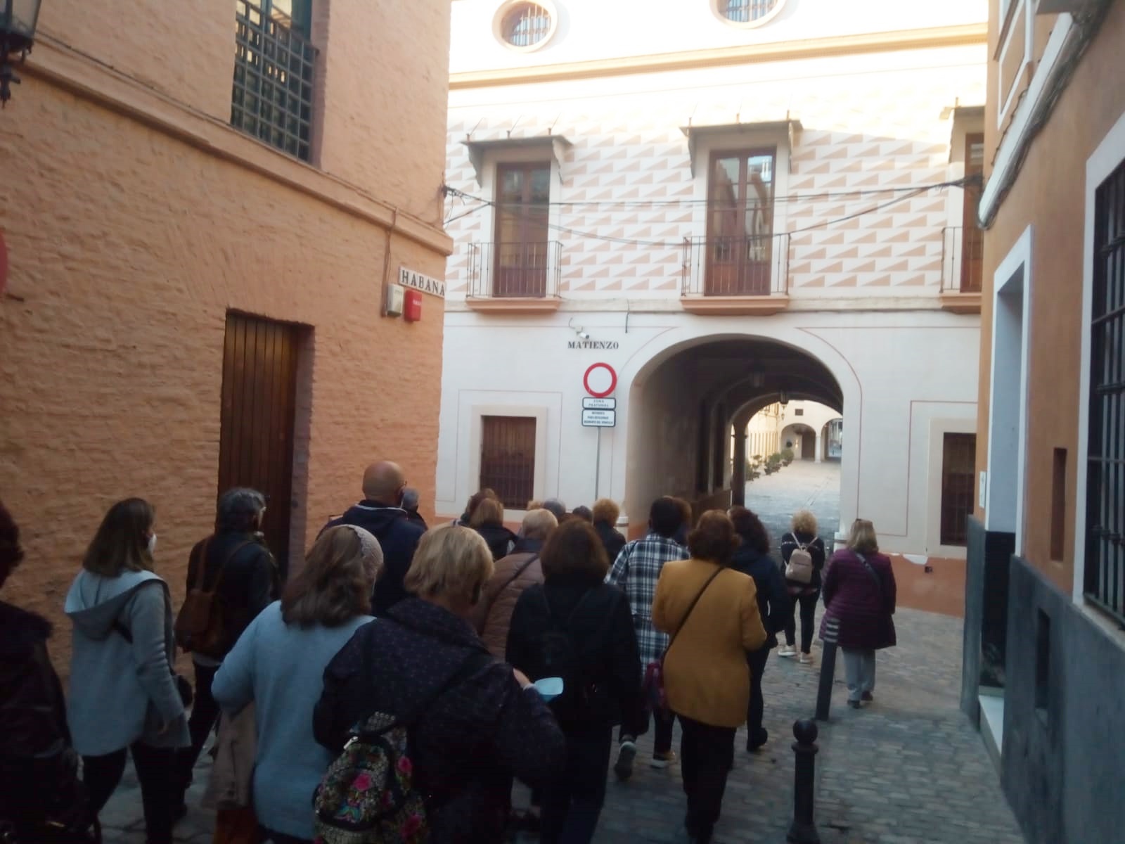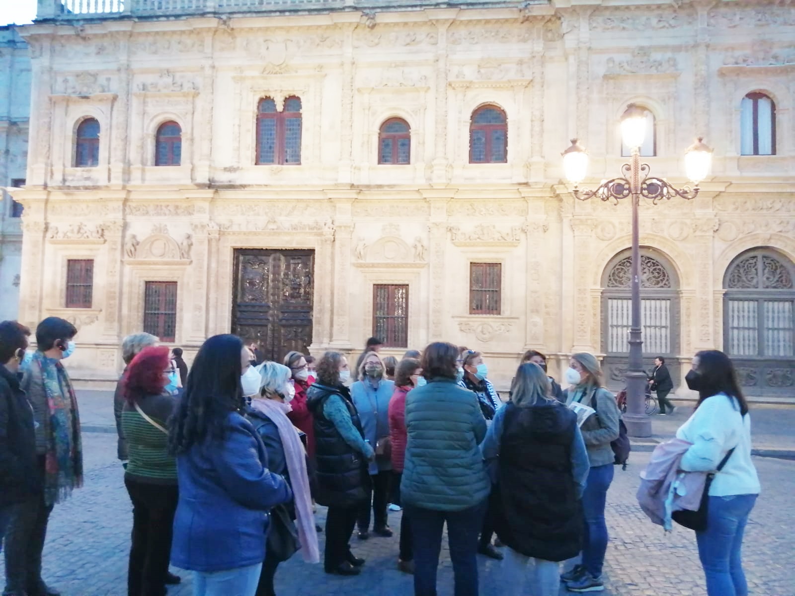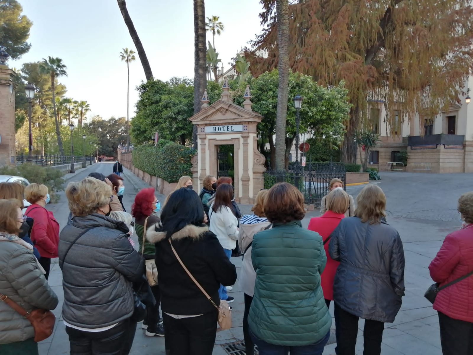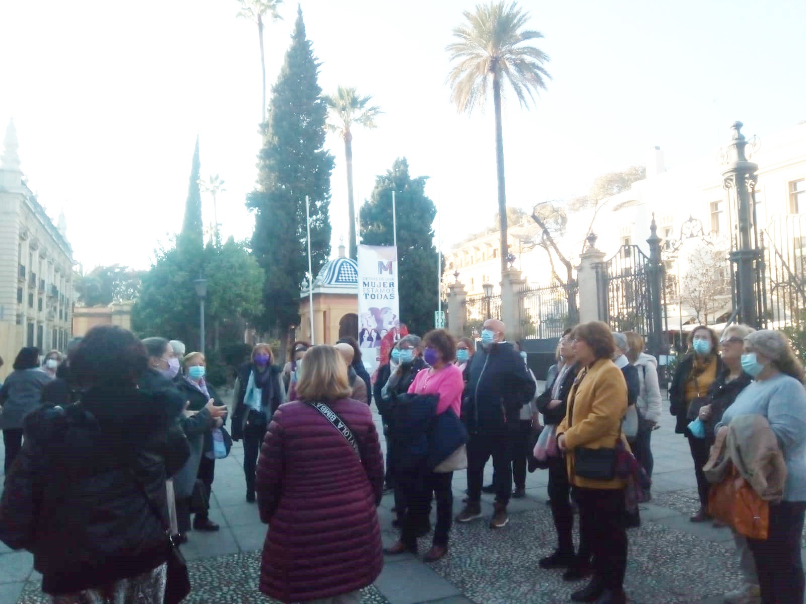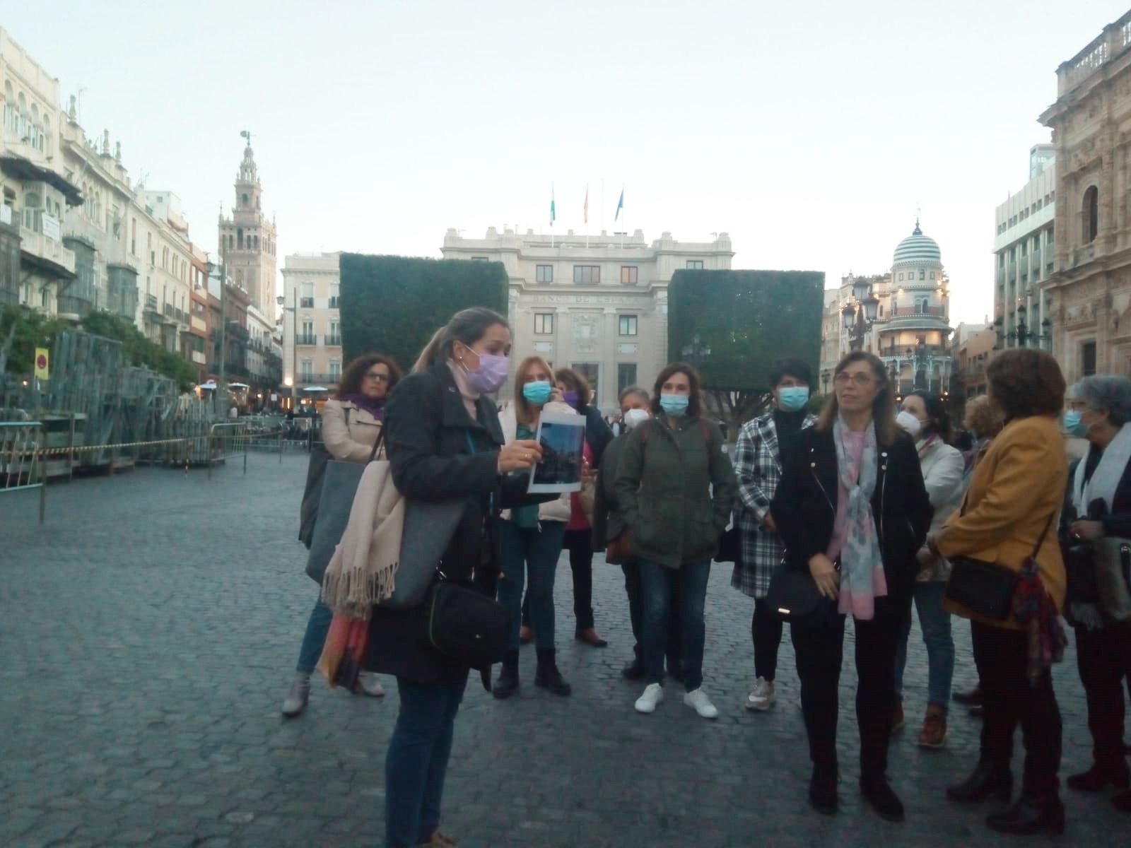 Así se preparó para este día una visita a Sevilla, de la mano de Sevilla Museo Vivo, con perspectiva de género, en la que las asistentes pudieron conocer de primera mano el camino de muchas mujeres sevillanas emprendedoras y pioneras en el desarrollo de nuestra ciudad. Algunas de ellas escondidas bajo seudónimos masculinos para llegar lejos en su vida profesional, otras perseguidas por hombres hasta el hecho de tener que ocultarse para defender su vida y su honor y otras, como las cigarreras, que abrieron el camino en la mejora de condiciones laborales y económicas.