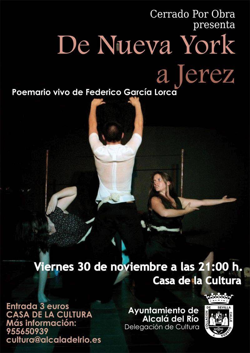 De Nueva York a Jerez es la justificación, la prueba viva de la existencia de Federico García Lorca. Y no sólo eso. Una afirmación furiosa de su vida a través de su poesía. De Nueva York a Jerez es un intento de sentir, más que explicar, la biografía del poeta andaluz a través principalmente de sus dos poemarios por excelencia: Poeta en Nueva York y Romancero Gitano .