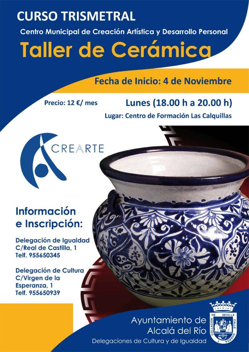 La Delegación de Cultura y Delegación de Igualdad trabajan de forma constante por el desarrollo del Centro Municipal de Creación Artística y Desarrollo Personal (CREARTE). De esta manera tras el comienzo del curso a inicio del mes de octubre con seis aulas anuales (yoga, bordado en oro, pintura artística, fotografía artística, expresión corporal y cerámic) vuelven a ofrecer una nueva programación con nuevas formaciones.
