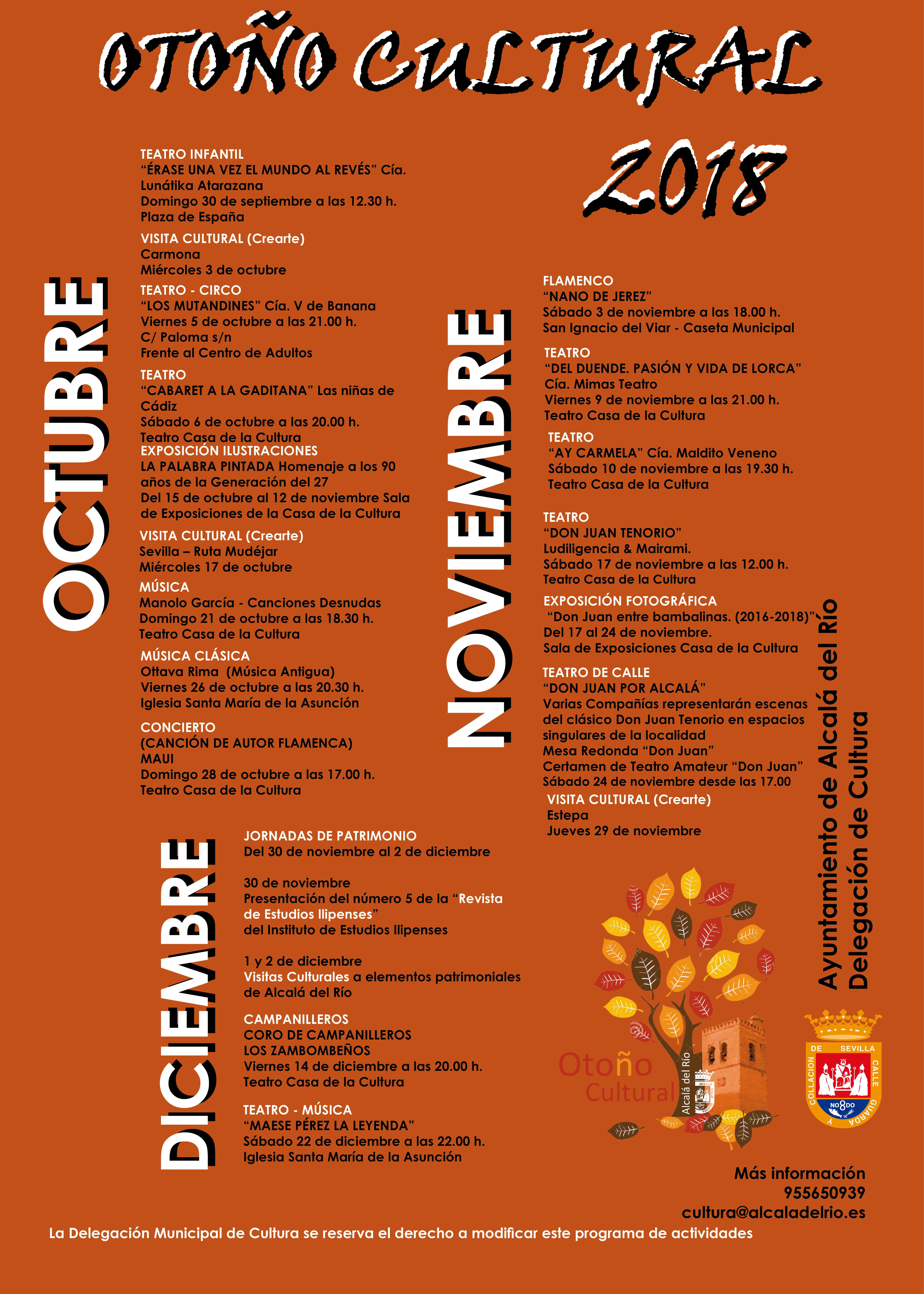 Alcalá del Río desde el mes de octubre a diciembre disfrutará de su Otoño Cultural donde la cultura
