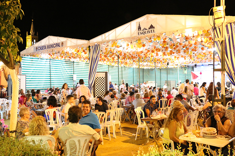 Con una Caseta Municipal al completo en la tradicional noche del “El Pescaito” la Feria de Esquivel abría las puertas de su real alrededor de las diez de la noche. Los esquiveleños y esquiveleñas se trasladaron al real haciendo que sus casetas como ‘Los Artistas’, ‘El Séptimo de Cubatería’, ‘Los Últimos’ junto a la Caseta Municipal lucieran más si cabe este primer día de feria.