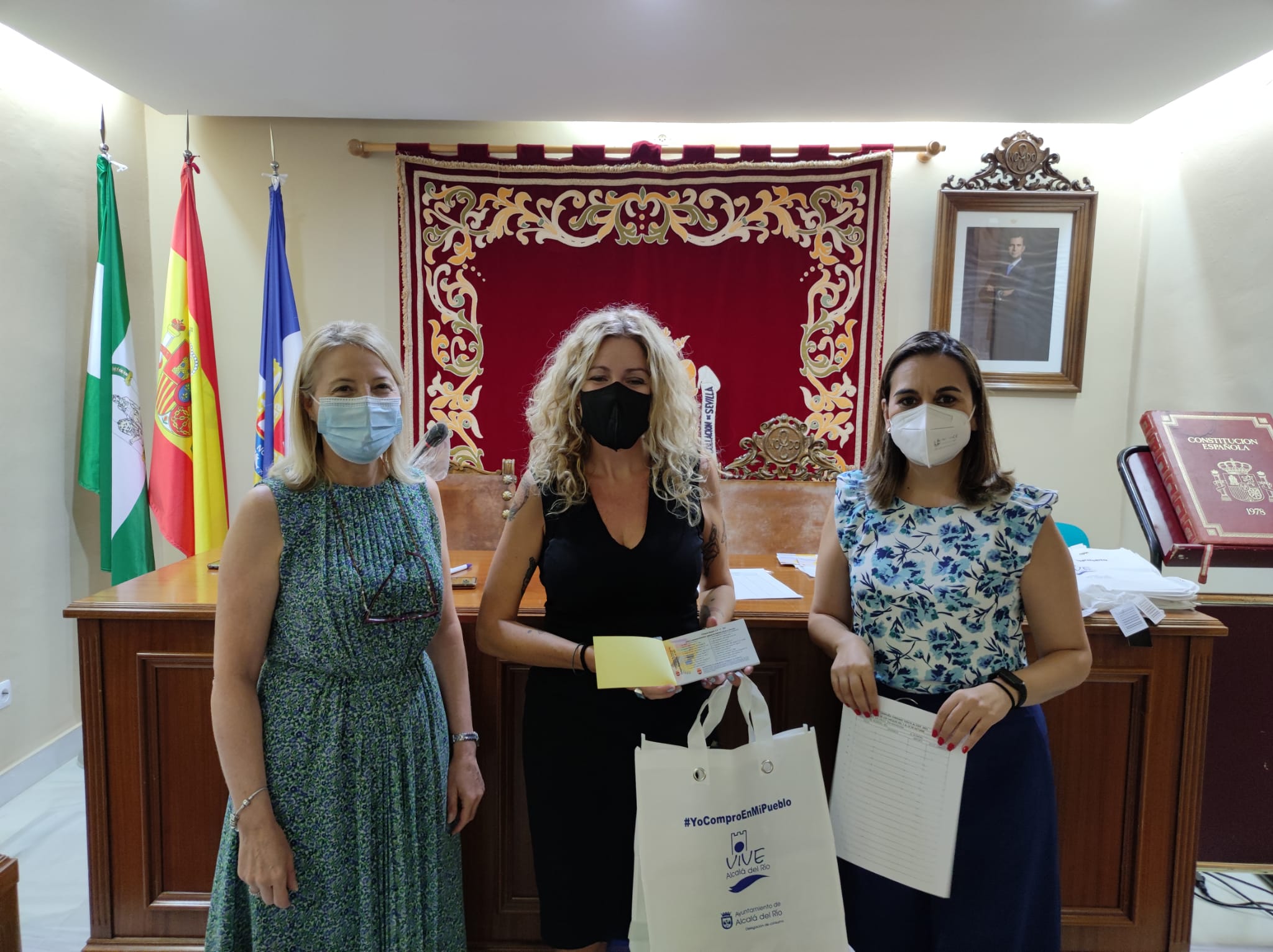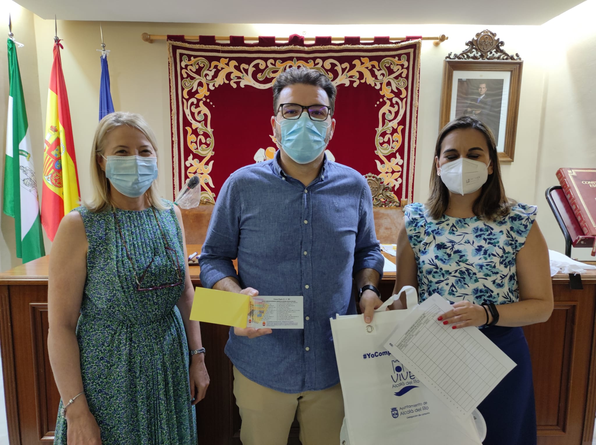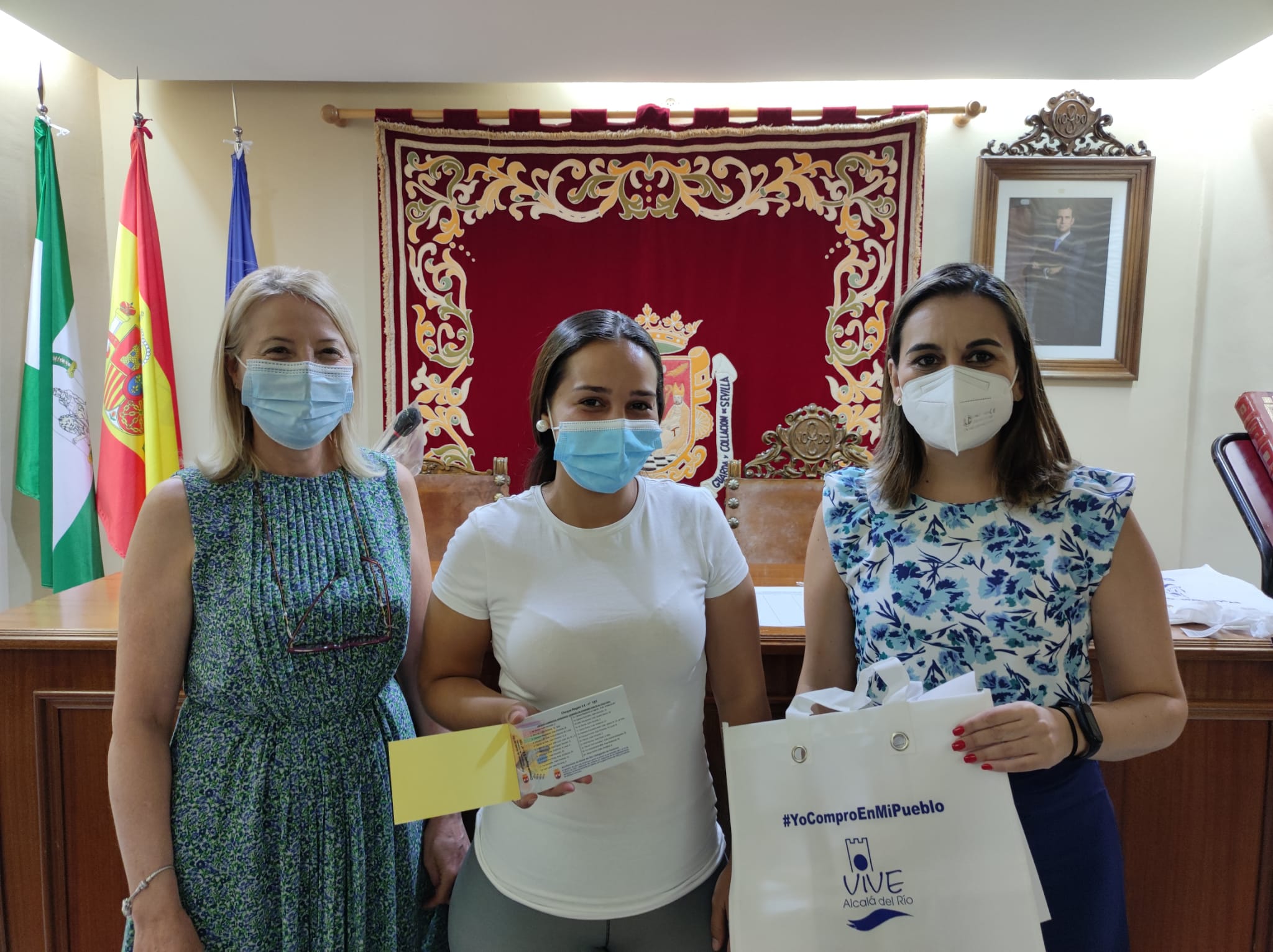 Entrega de los cheques a los premiados de la campaña de apoyo al comercio local; La Vuelta al cole en Alcalá del Río