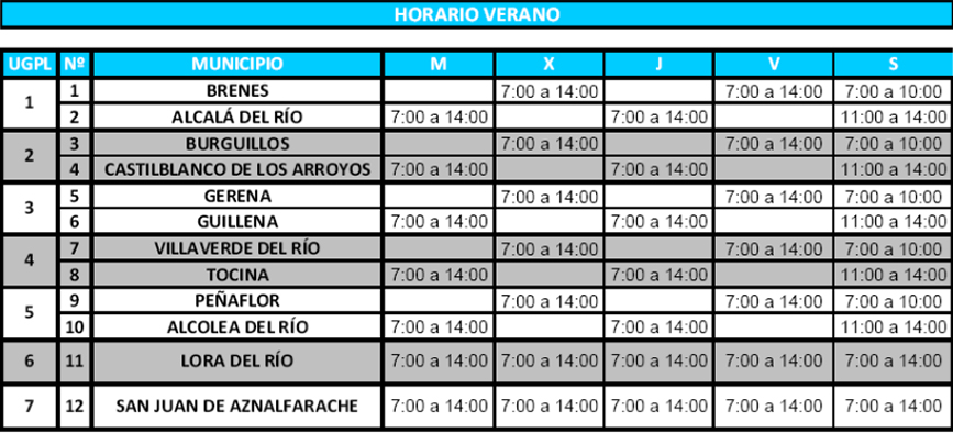 El próximo martes, 1 de junio, entra en vigor el horario de verano de los Puntos Limpios que gestiona la Mancomunidad de La Vega en los municipios de Alcalá del Río, Alcolea del Río, Brenes, Burguillos, Castilblanco de los Arroyos, Gerena, Guillena, Lora del Río, Peñaflor, Tocina-Los Rosales, San Juan de Aznalfarache y Villaverde del Río. Este horario permanecerá en vigor hasta el próximo 20 de septiembre.