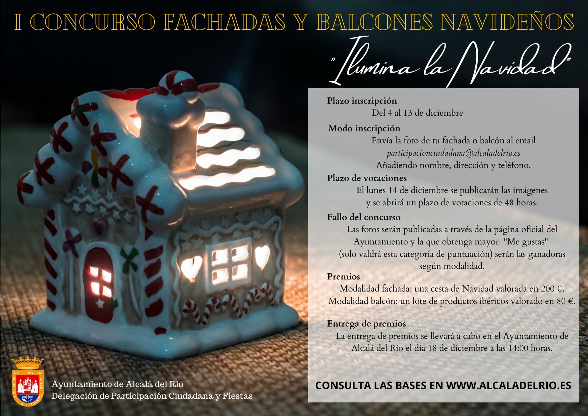 Desde hoy, viernes 4 y hasta el próximo 13 de diciembre, se encuentra abierto el plazo para la presentación de inscripcionesal I Concurso de fachadas y balcones navideños de Alcalá, Esquivel, San Ignacio y El Viar.