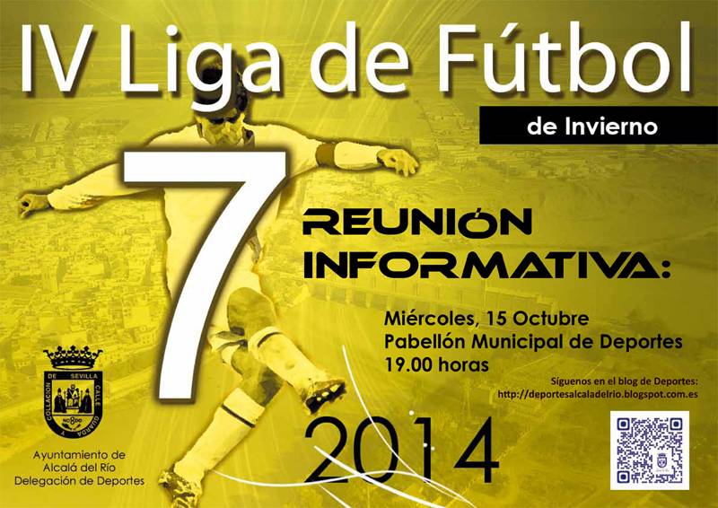 La Delegación de Deportes informa que el próximo miércoles, 15 de octubre a las 19.00 horas en el Pabellón Municipal de Deportes se celebrará la reunión informativa para cerrar todo los preparativos y condiciones para poner en marcha la que será ya la cuarta edición de la Liga de Fútbol 7 de Invierno.