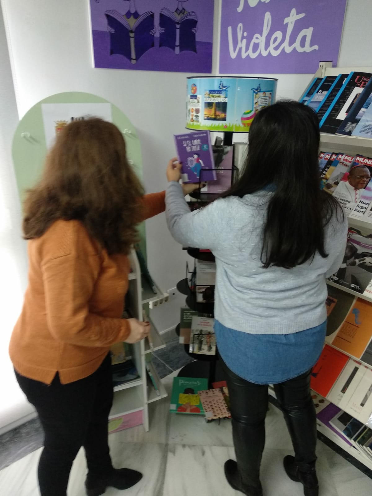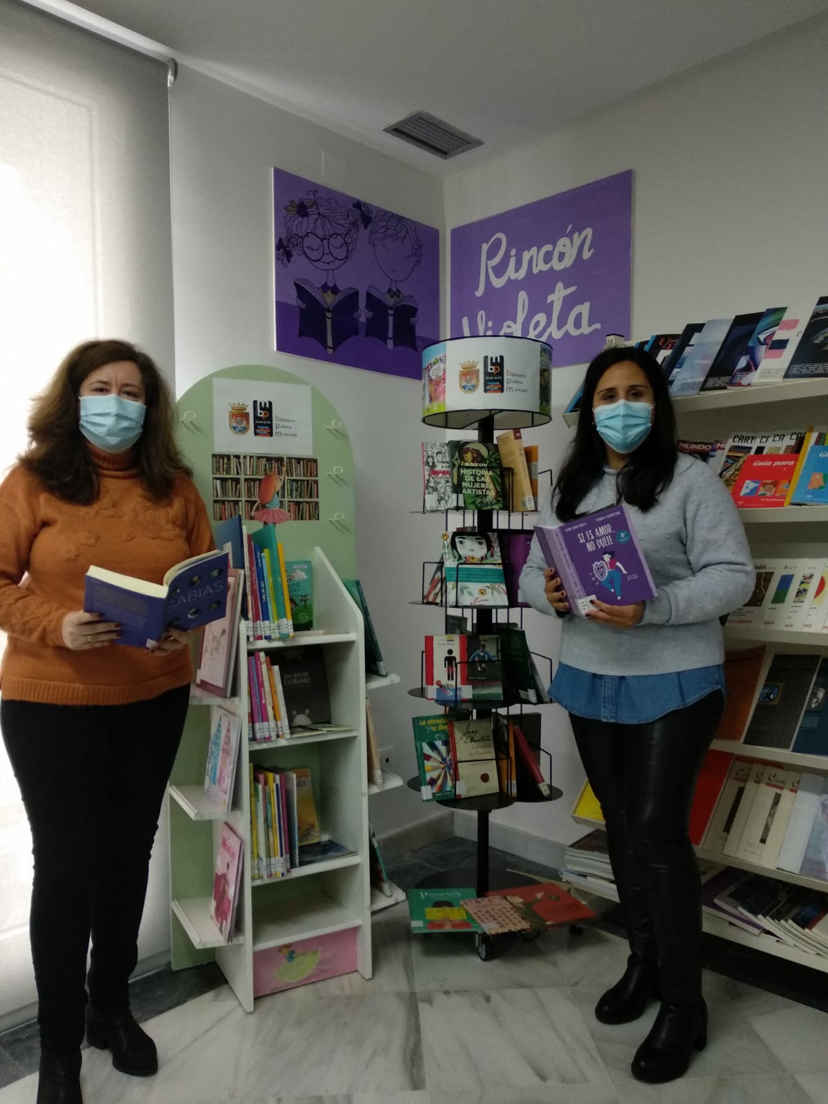 En la mañana de hoy la Delegada de Igualdad, María Goretti García, ha inaugurado el Rincón Violeta junto a la Bibliotecaria de la Biblioteca Municipal, Mari Carmen Delgado. Un rincón para sensibilizar y aprender en Igualdad que cuenta con un contenido específico relacionado con la igualdad de género.