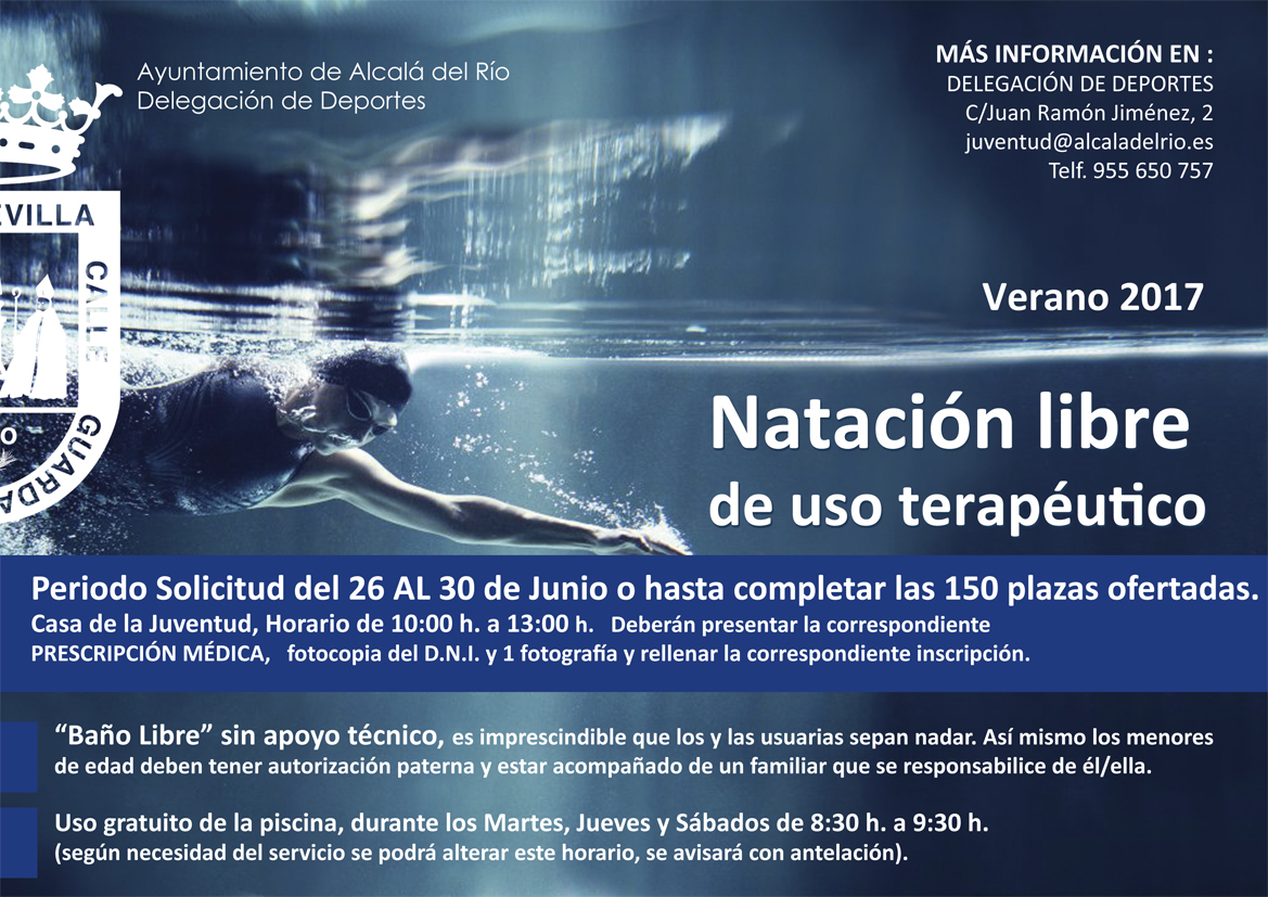 La Delegación de Deportes informa del periodo de inscripción para la Natación libre de uso terapéutico