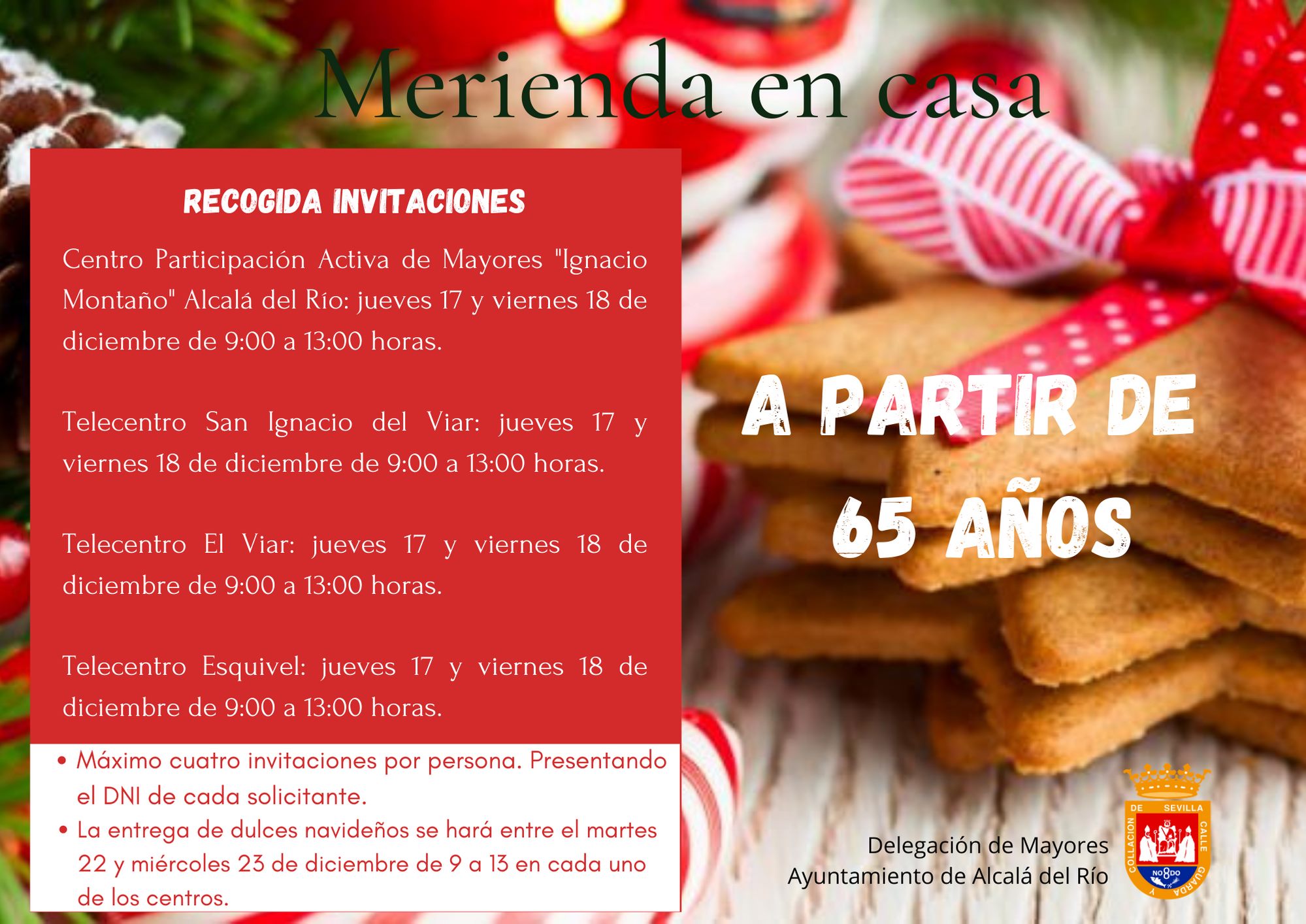 Delegación de Mayores haremos entrega de unas invitaciones a todos los mayores de 65 años que