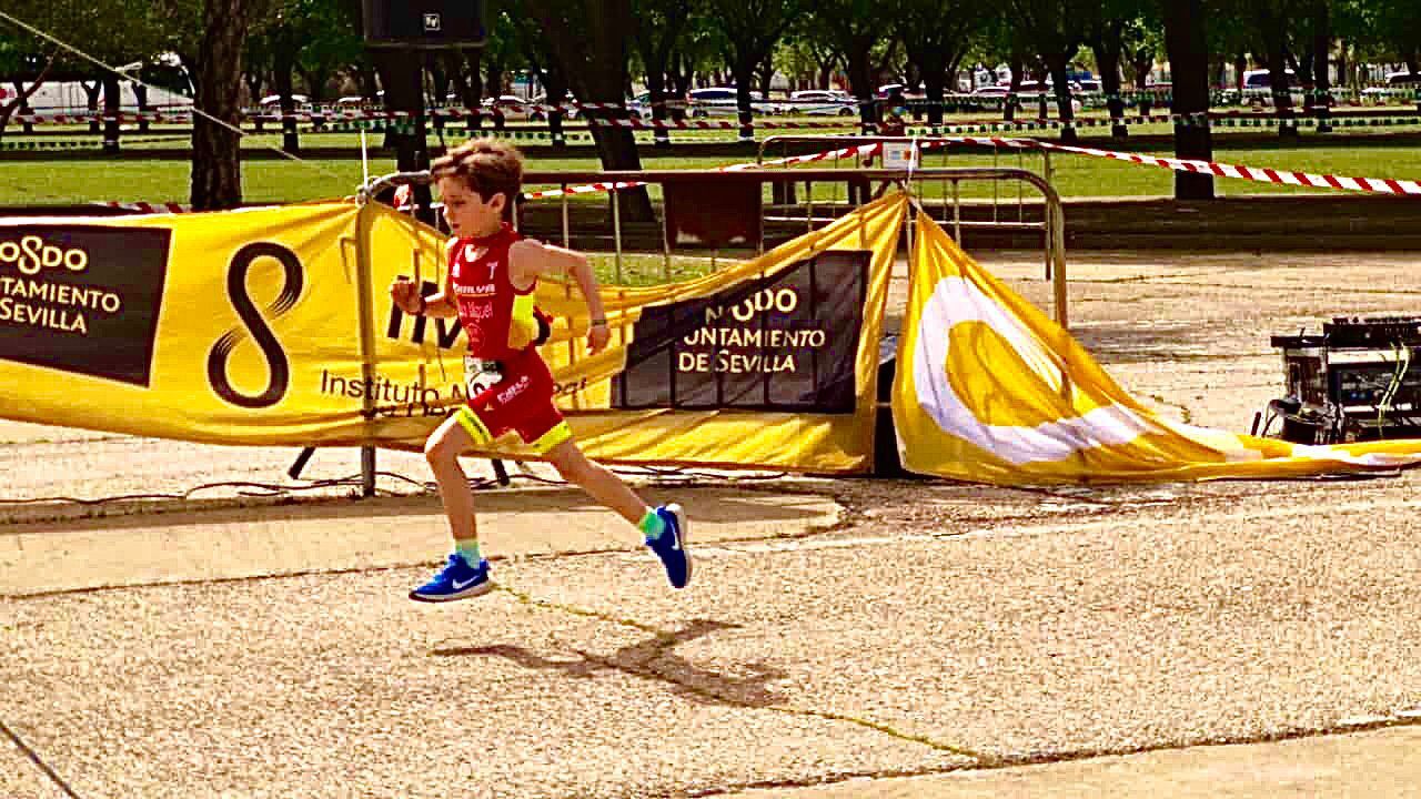 El triatleta alcalareño, de tan solo 6 años, consigue podium tras imponerse entre los tres mejores de su categoría en esta primera prueba celebrada en Sevilla