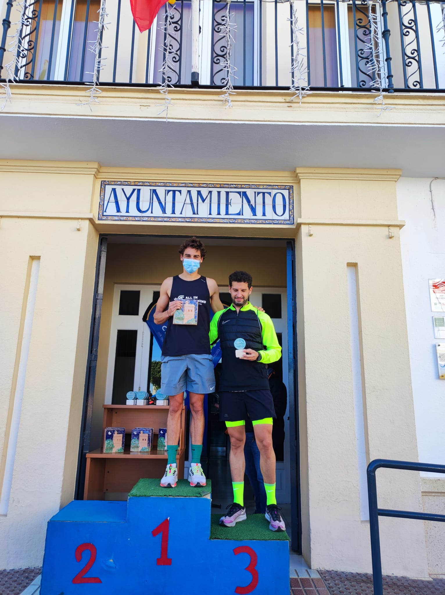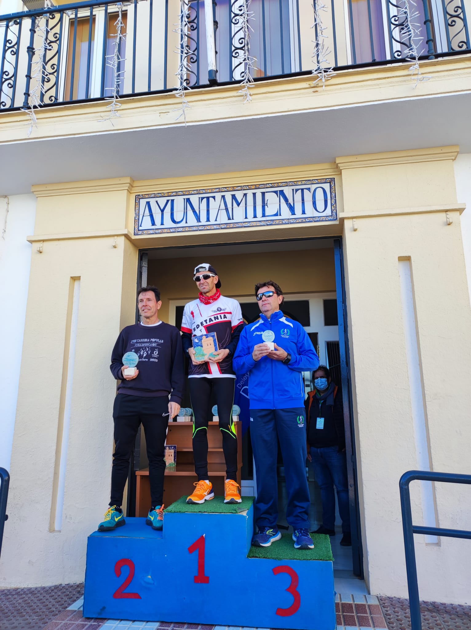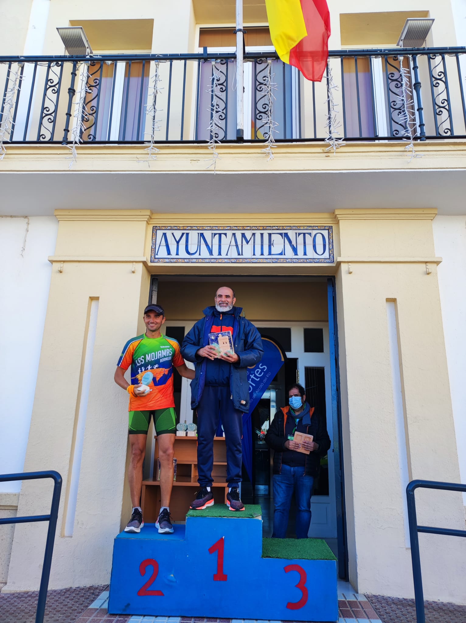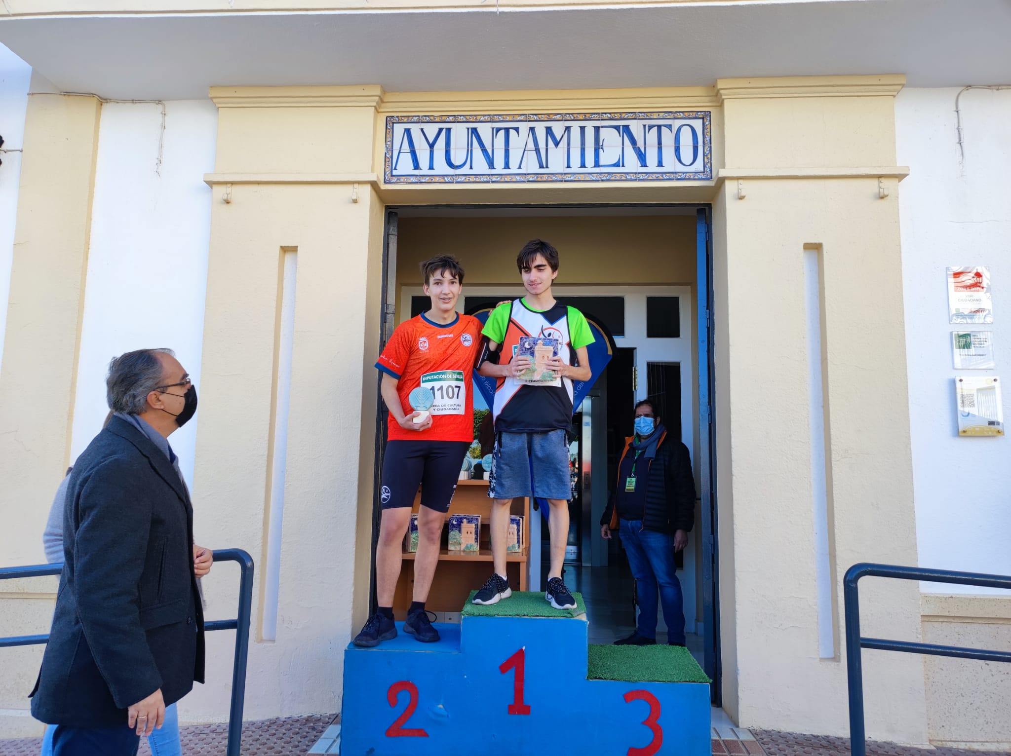 En menos de una hora, llegó el primer corredor Sergio Gómez Suárez del club AD Sevilla, con un promedio de 03:51:09 el kilómetro seguido de Francisco Castillo Limón, del club CD Turdetania, con un promedio de 03:53:02. Ambos consiguieron el oro en sus categorías, Senior Masculino y Veterano B masculino, respectivamente.
