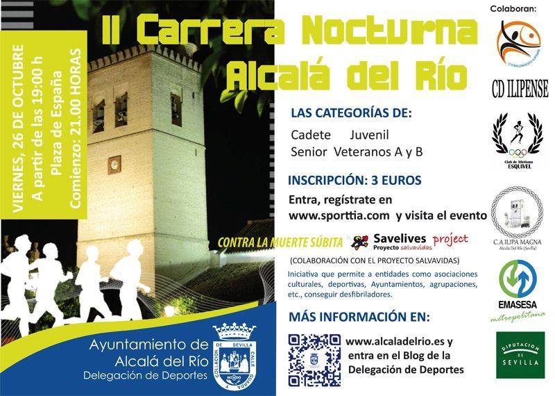 Se acercan las fechas para la segunda edición de la Carrera Nocturna de Alcalá del Río. Toda una experiencia por las calles más emblemáticas y recónditas de esta antigua Ilipa Magna. Ahora ya puedes descargar el díptico con más información del evento y donde conseguirás la hoja de inscripción para dirigirte a la Casa de la Juventud (C/Juan Ramón Jiménez). Sumándose este modalidad de inscripción a la puesta en servicio por la Delegación de Deportes del registro online en www.sporttia.com