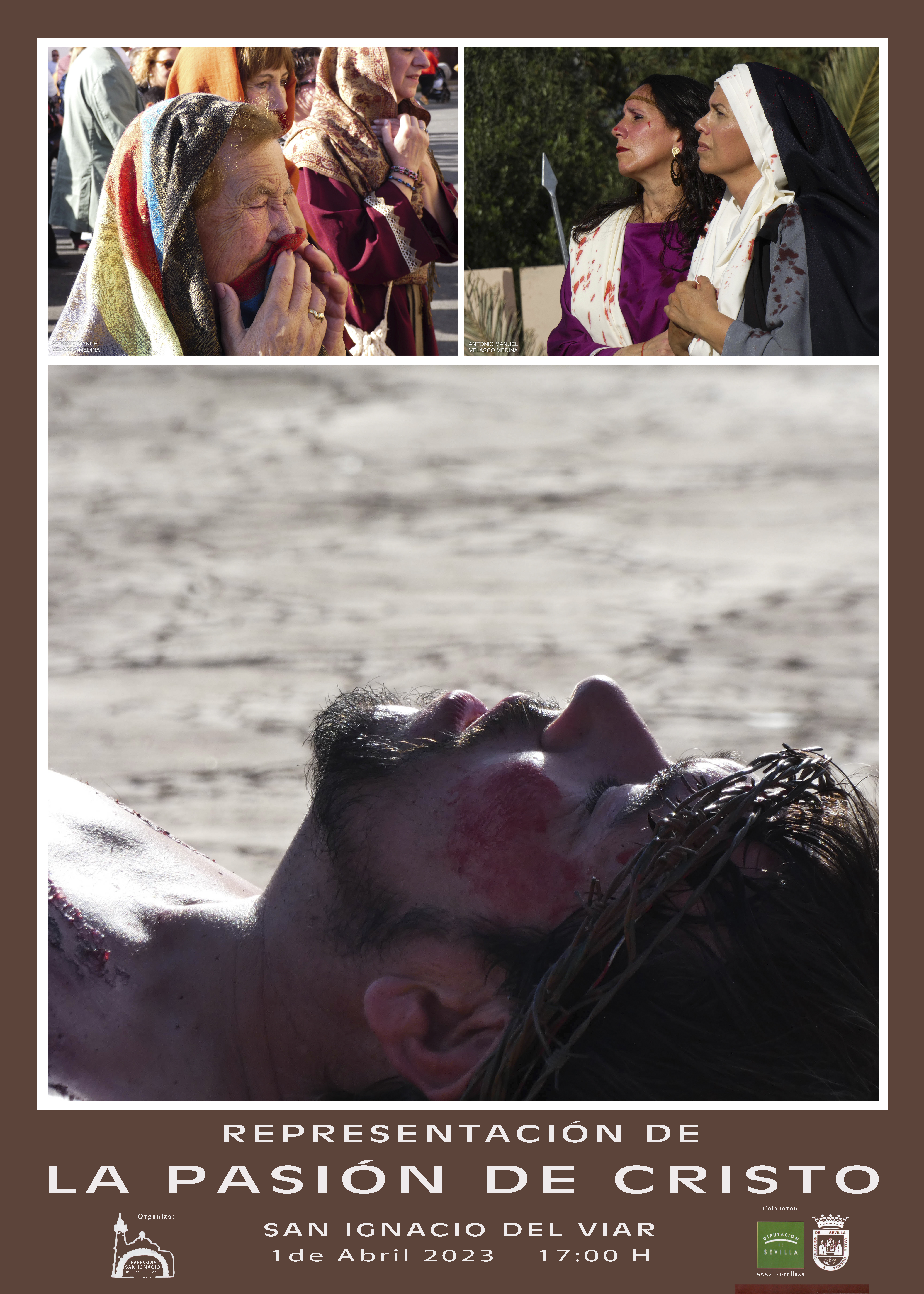 El cartel esta dividido en tres partes. La central y más llamativa, la imagen de Jesús momentos antes de ser crucificado y dos imágenes superiores, algo más pequeñas que la anterior, donde se pueden ver, a la izquierda a la anteriormente citada Loli, que formaba parte del cortejo del pueblo, y a la derecha a la Virgen María y María Magdalena.