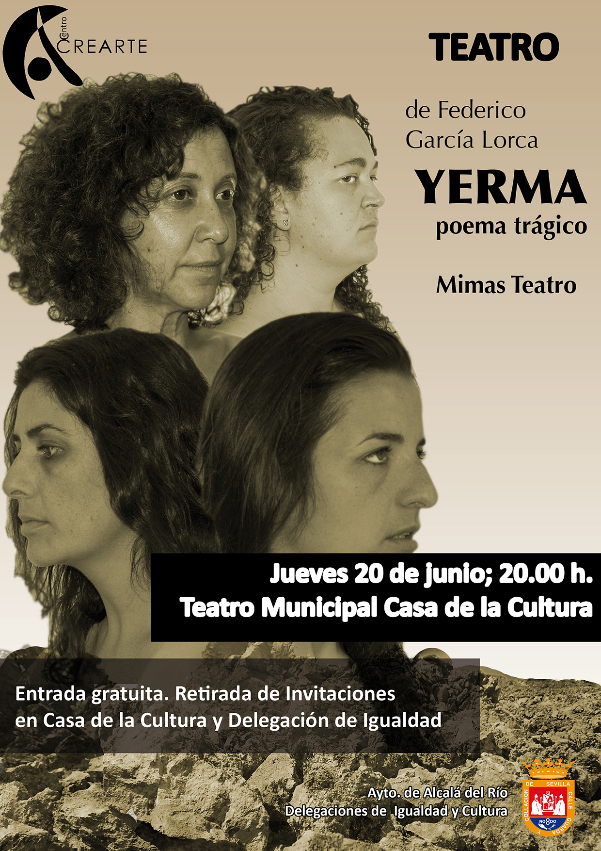 En el marco de los actos de clausura del Centro Crearte, el próximo jueves 20 de junio a las 20.00 h. podremos disfrutar del espectáculo teatral “Yerma, poema trágico” a cargo de la cía. Mimas Teatro.