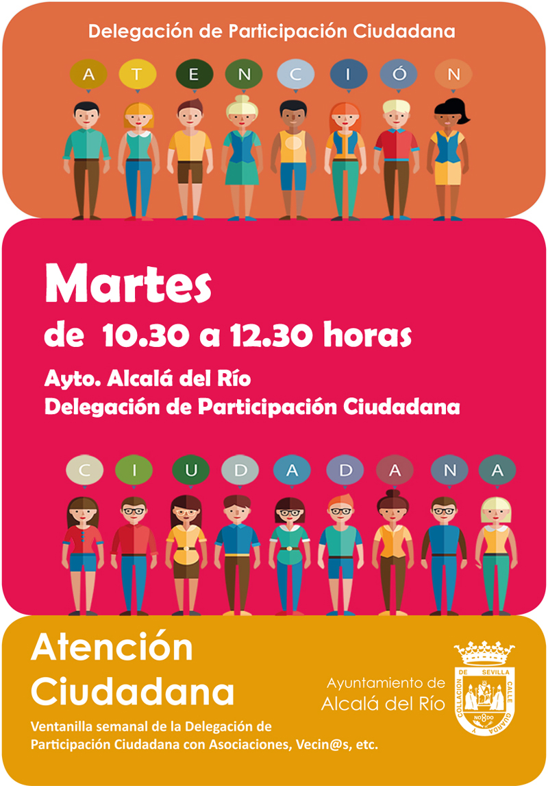 La Delegación de Participación Ciudadana continúa con su labor de atención ciudadana que ponía en marcha en el pasado mes de enero. Durante los meses de verano la Delegación informa del cambio de día pasando de viernes a los martes en mismo horario de 10.30 h a 12.30 h en el Ayuntamiento de Alcalá del Río.