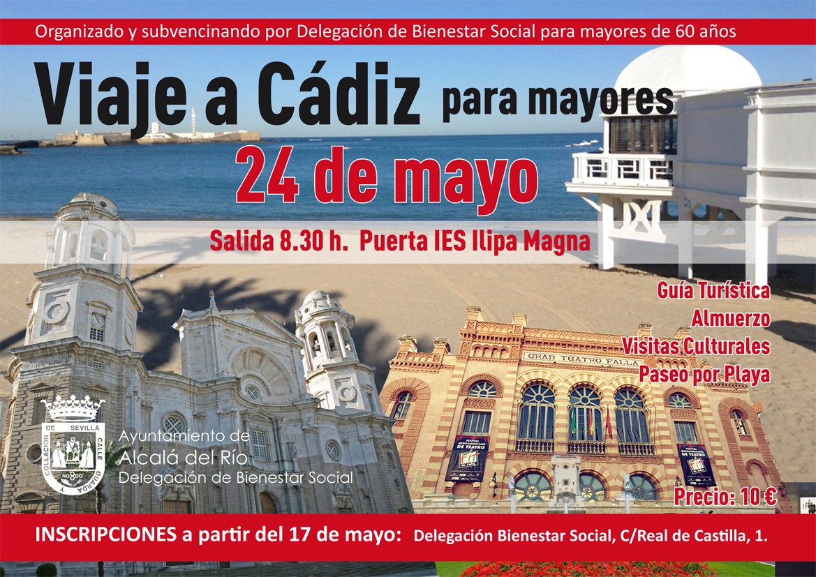 Abriendo la programación de viajes y encuentro de mayores de esta primavera-verano la Delegación publica este primer viaje a la capital gaditana el próximo 24 de mayo.