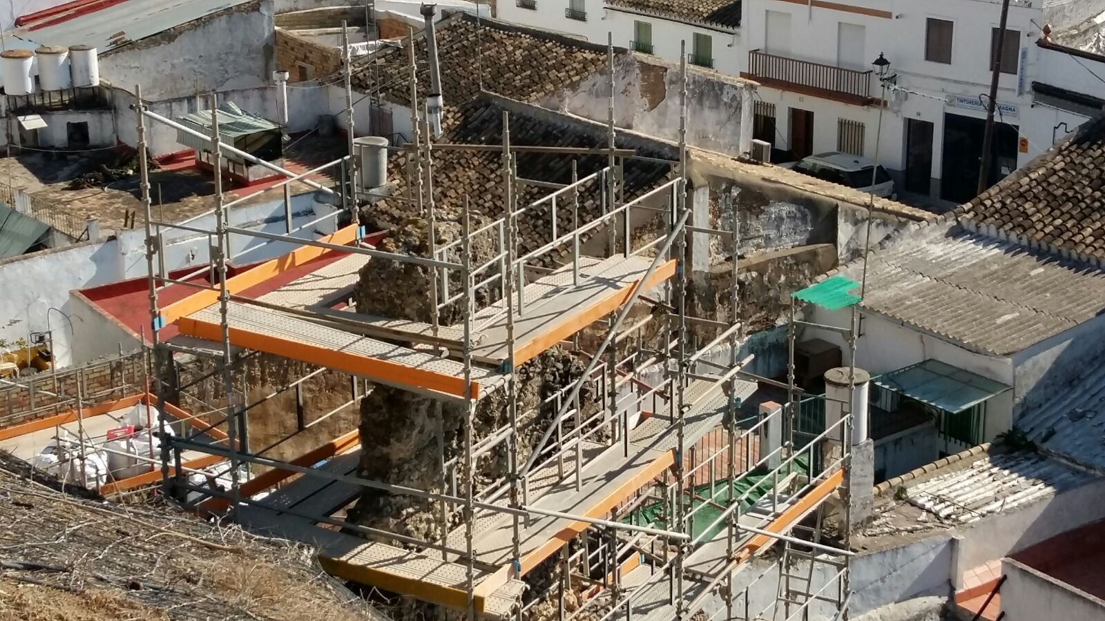 En estos días se ejecutan las obras del proceso de restauración sobre tramo de la muralla que venía sufriendo riesgo de desplome, no sólo afectando a la estructura en sí sino a las viviendas colindantes, las cuales sufrían un imporantísimo peligro por la inestabilidad del bloque. Una petición realizada a la Diputación de Sevilla y aprobada dentro de la línea 4 del Plan estratégico 2016/2017 del Área de Concertación, teniendo cabida en el apartado primero de las Normas del Fondo de Cooperación Municipal, ya que concurren razones de urgente necesidad y de interés público, social y humanitario.