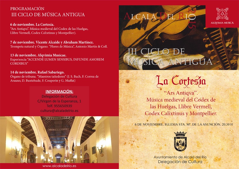 Hoy dará comienzo la tercera edición del Ciclo de Música Antigua de Alcalá del Río. Una oportunidad para acercarnos a este género músical de la mano de grandes músicos profesionales. Un total de cuatro conciertos de gran valor musical conforman el programa de este ciclo.