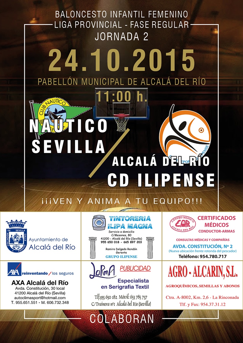 Mañana sábado, 24 de octubre, en el Pabellón Municipal de Deportes de Alcalá del Río los amantes del baloncesto tiene una cita que no pueden dejar pasar. A partir de las 11 h de la mañana el quipo femenino infantil del CD Ilipense se enfrentará al Náutico Sevilla en la segunda jornada de la Liga Provincial ? Fase Regular.