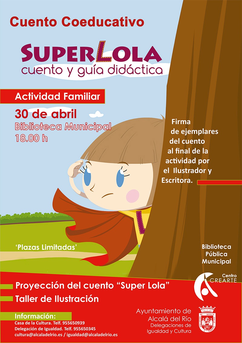 Este jueves, 30 de abril, desde la Delegaciones de Igualdad y Cultura junto a la Biblioteca Municipal organizan una fantástica actividad para los más pequeños lectores alcalareños. Un taller de coeducación con la conocida heroína SuperLola, un personaje inconformista y valiente que rompe con los estereotipos propios del género eliminando las diferencias entre hombres y mujeres.