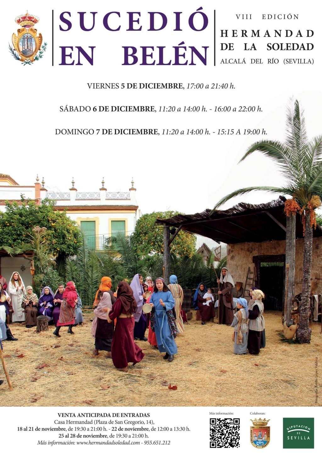 Como cada año, fiel a su cita, el belén viviente organizado por la Hdad. de la Soledad de Alcalá del Río vuelve a trasladar las calles y rincones del centro histórico del municipio a la más realista aldea donde viviremos el nacimiento de Jesús. Desde el 5 al 7 de diciembre, podremos disfrutar de la VII Edición de esta representación que se afianza como evento en la agenda de actos navideños de la provincia.
