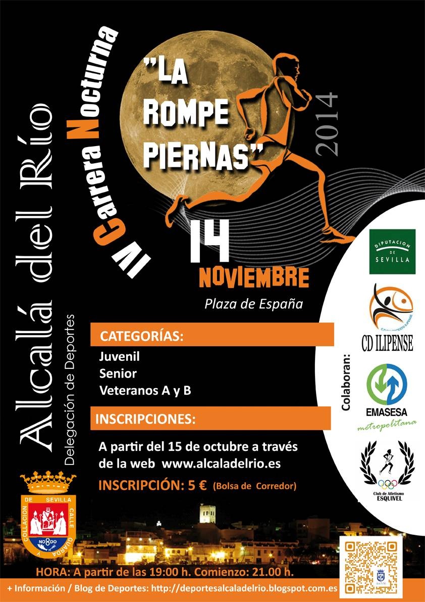 Ya se aproxima la carrera nocturna de Alcalá del Río cumpliendo este año su cuarta edición. Un evento deportivo que se va asentando en el programa de carreras de la provincia y que muchos conocen no por su extensión sino por su esfuerzo debido a los fuertes desniveles en diferentes zonas del recorrido, ganándose así el título entre los corredores como ?la Rompe Piernas?.
