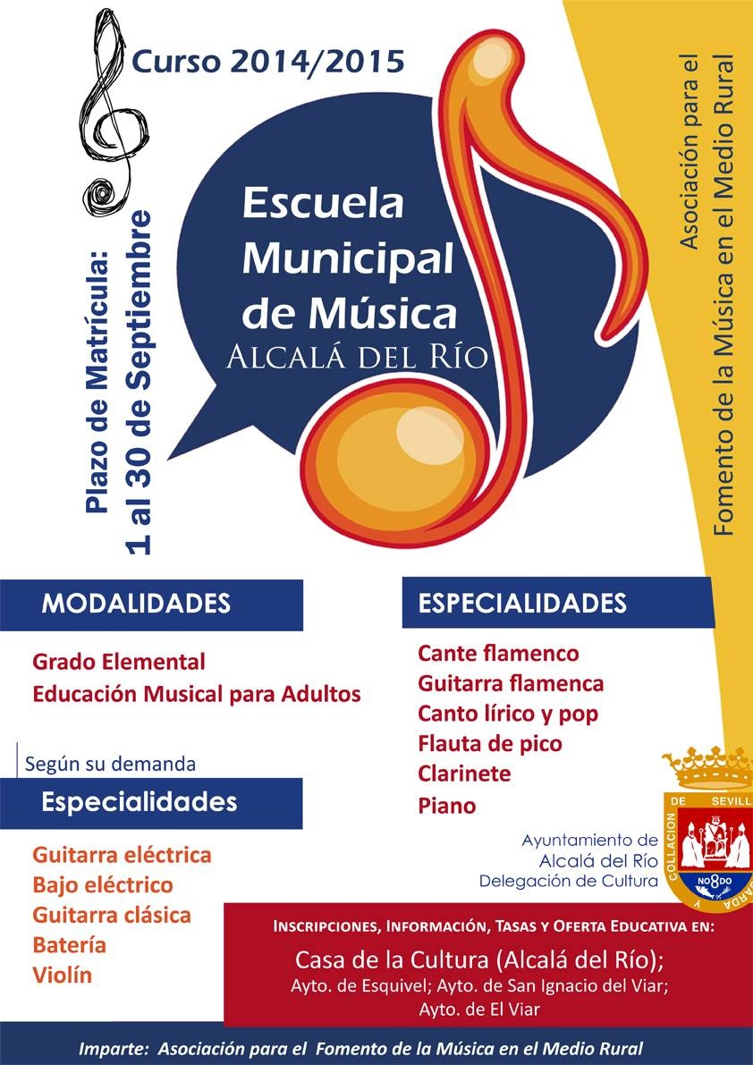 La Delegación de Cultura informa que se encuentra abierto el plazo de matrícula en la Escuela Municipal de Música para el nuevo curso 201/2015. Una escuela que cada año sigue creciendo como a principal oferta de educación musical del municipio.