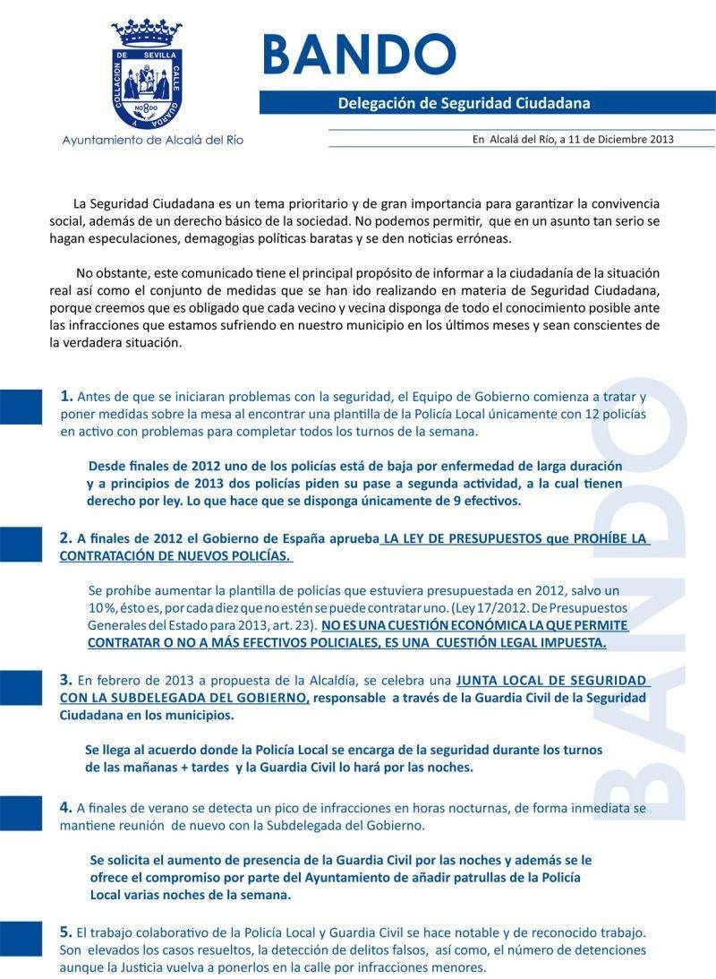 Bando Municipal. Delegación de Seguridad Ciudadana