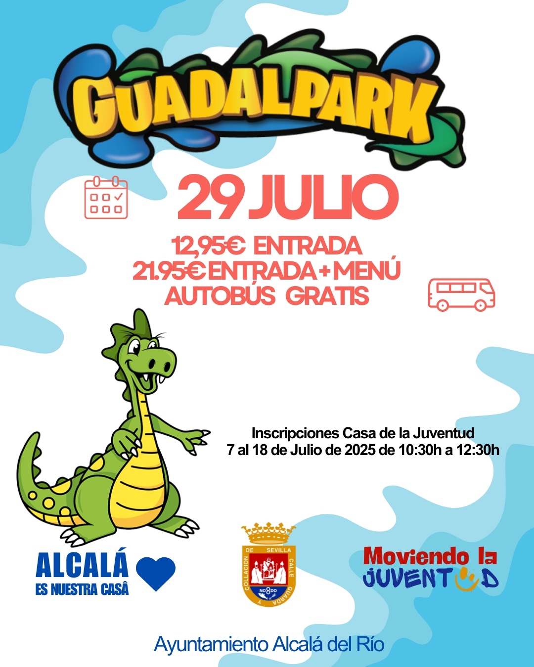 Alcalá del Río, 5 de julio de 2025 - El próximo 29 de julio, el Ayuntamiento de Alcalá del Río, a través de su Delegación de Juventud, pone en marcha una refrescante y divertida salida al parque acuático Guadalpark, uno de los más destacados de Andalucía. Una iniciativa veraniega dirigida a jóvenes del municipio que promete sol, toboganes y mucha diversión.
