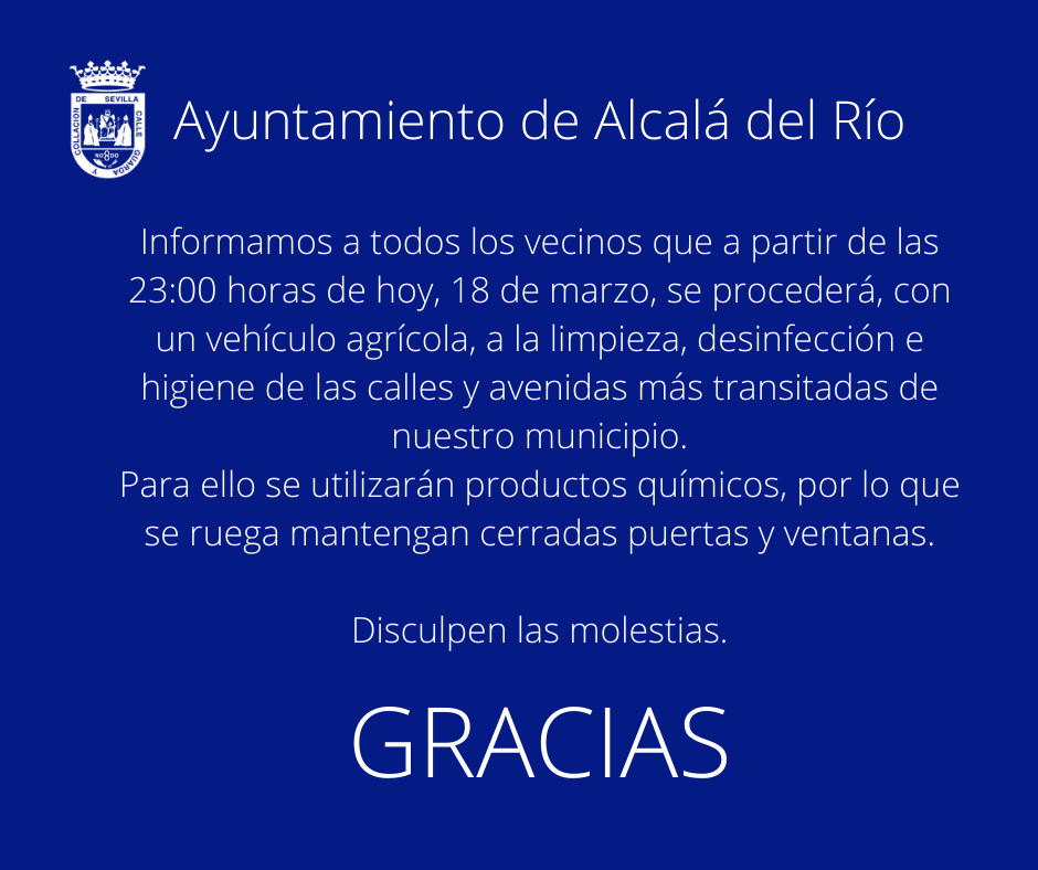 Desde el Ayuntamiento de Alcalá del Río se estudiarán medidas de cara a la situación de alarma que estamos viviendo.