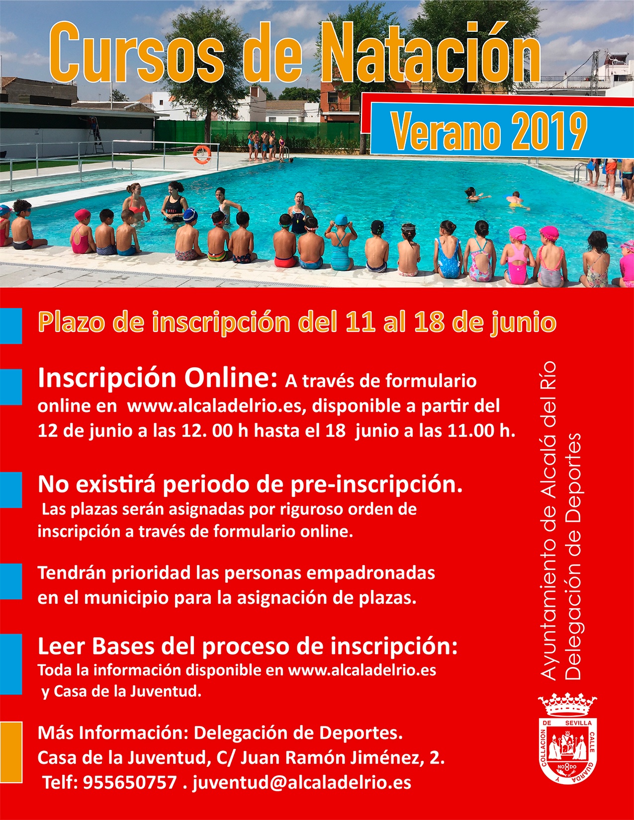 Atendiendo a problema informático ajeno a nosotros con la web municipal www.alcaladelrio.es alojada en Diputación de Sevilla, y sobre todo, para garantizar la igualdad de oportunidades en la inscripción en los Cursos de Natación 2019, TRASLADAMOS LA APERTURA DE LA INSCRIPCIÓN A MAÑANA MIÉRCOLES, 12 DE JUNIO, A LAS 12.OO HORAS , manteniéndose todo con el mismo proceso y de igual manera.