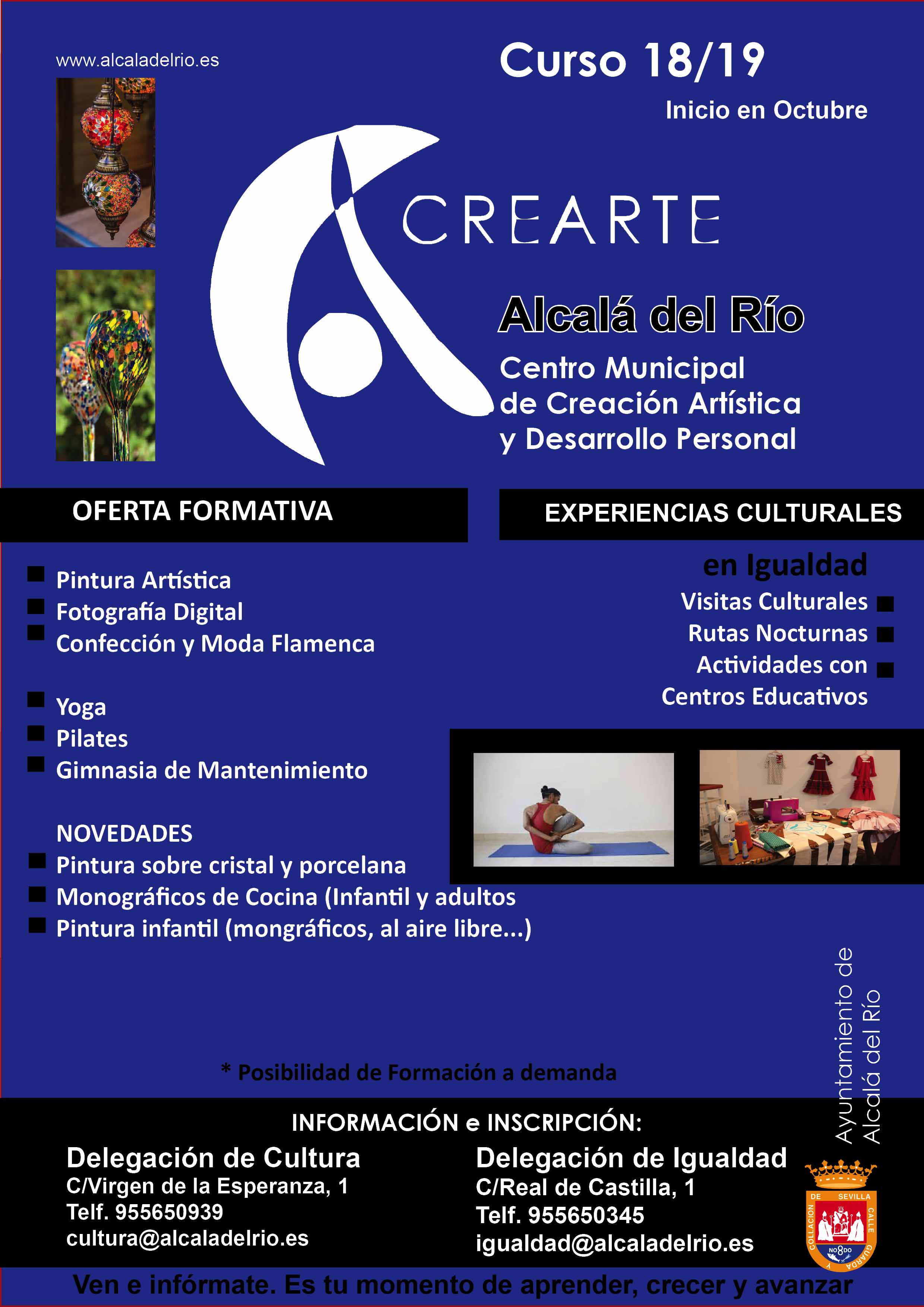 Las delegaciones de Cultura e Igualdad con el inicio de mes de octubre vuelven fielmente a poner en marcha la amplia oferta formativa que continúa consolidando al Centro Municipal de Creación Artística y Desarrollo Personal.