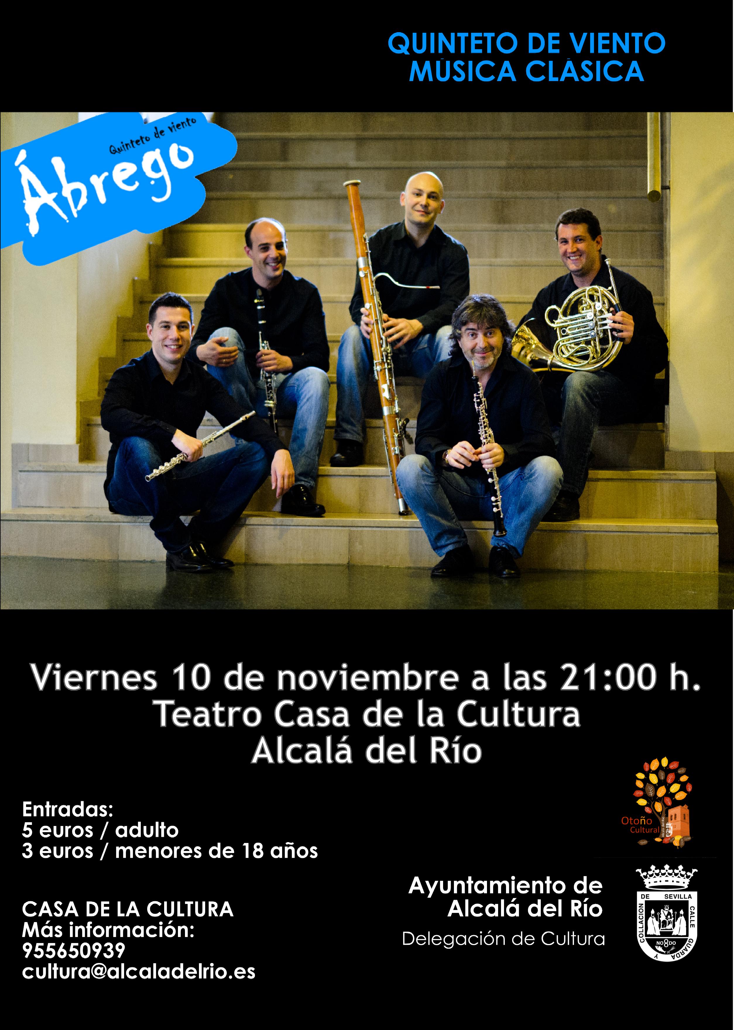 El Quinteto de Viento Ábrego creó en el año 2013 y está compuesto por músicos de la Real Orquesta Sinfónica de Sevilla y del West-Estern Divan.Este viernes 10 de noviembre, a las 21.00 h. en el teatro de la Casa de la Cultura tendrá lugar la actuación del Quinteto de Viento Ábrego.