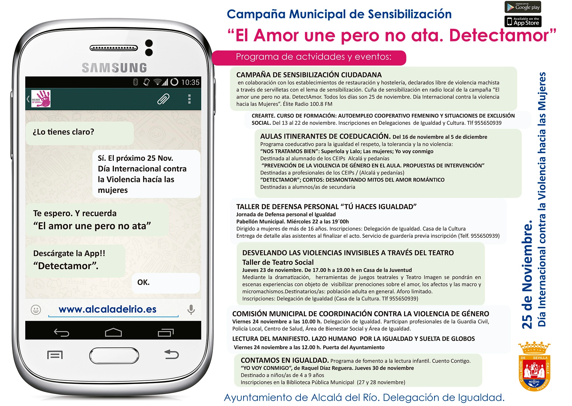 Con el objetivo de hacer más visible esta lacra social, presente aún en nuestros días, el mes de noviembre se convierte en expositor y bandera reivindicativa de este lucha. De esta manera, cada año la Delegación de Igualdad del Ayuntamiento de Alcalá del Río trabaja en la organización de un amplio programa que influya e incida en ciudadanos de diferentes edades, sectores, etc.